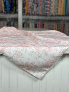 Fabric Collection: This fabric has a polyester base with our "French Toile" print in Dusty Rose color with a White background.