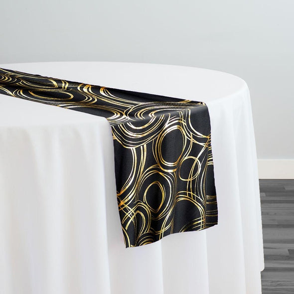 Orbit (Metallic Print) Table Runner in Black and Gold