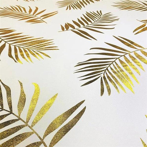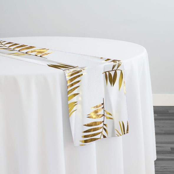 Leaf (Metallic Print) Table Runner in White and Gold