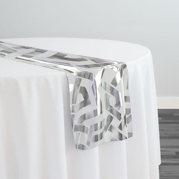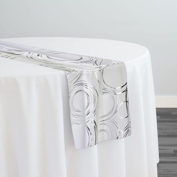 Orbit (Metallic Print) Table Runner in White and Silver