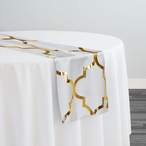 Luxor (Metallic Print) Table Runner in White and Gold