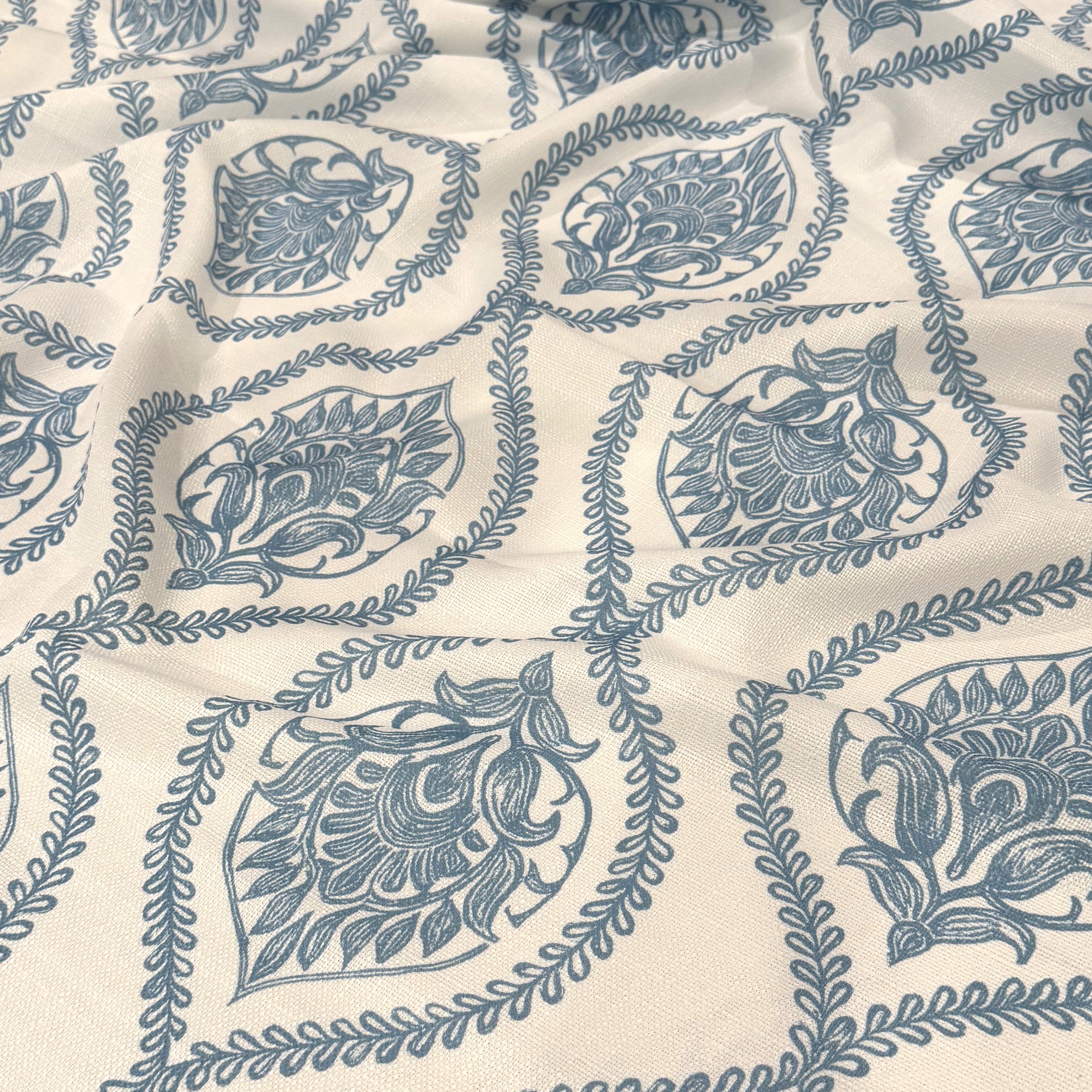 Fabric Collection: Mayfair (Slub Print) is a premium slubby, linen-inspired fabric featuring a refined ornamental pattern created through high-quality digital printing. The textured base provides a natural look and elegant drape, making it a sophisticated choice for elevated event décor.