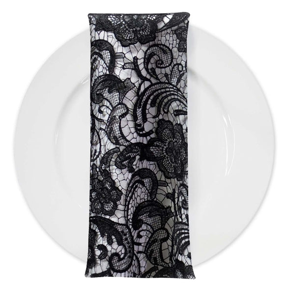 English Lace (w/ Poly Lining) Table Napkin in Black