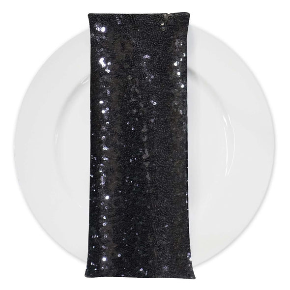 Glitz Sequins (w/ Poly Lining) Table Napkin in Black