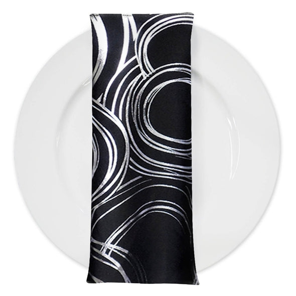 Orbit (Metallic Print) Table Napkin in Black and Silver