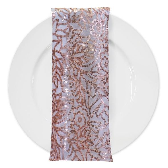 Fiori Leaf Sequins (w/ Poly Lining) Table Napkin in Blush