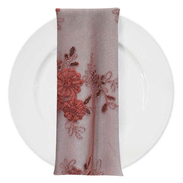 Ribbon Mesh Lace (w/ Poly Lining) Table Napkin in Blush