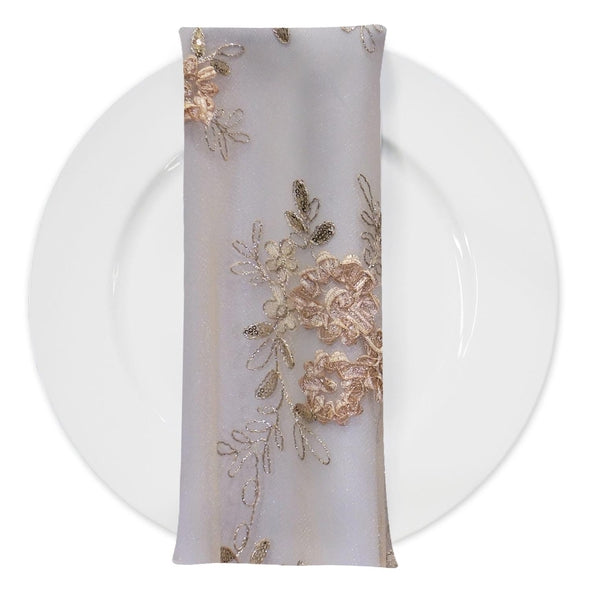 Ribbon Mesh Lace (w/ Poly Lining) Table Napkin in Champagne
