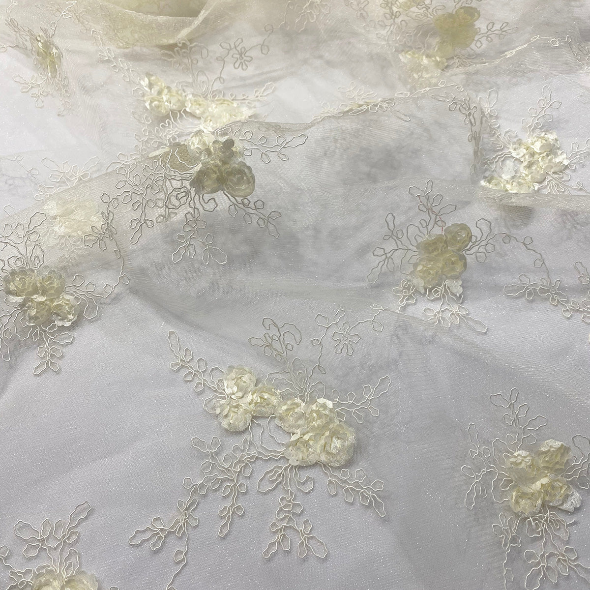 Fabric Collection: This material has a mesh/sheer base w/ embroidery & small baby floral design.