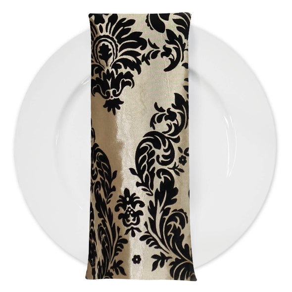 Damask Flocking Taffeta Table Napkin in Black on Ivory