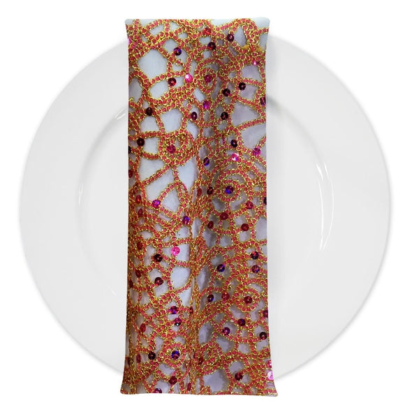 Flower Chain Lace (w/ Poly Lining) Table Napkin in Red and Gold