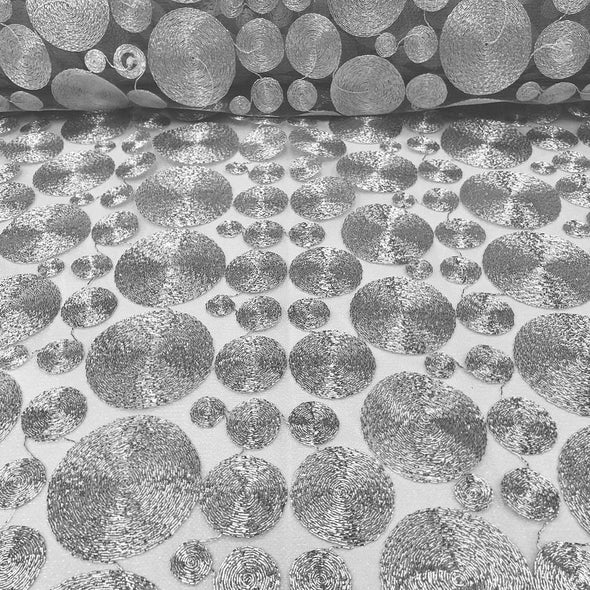 Mesh netting base w/ metallic circle embroidery design.