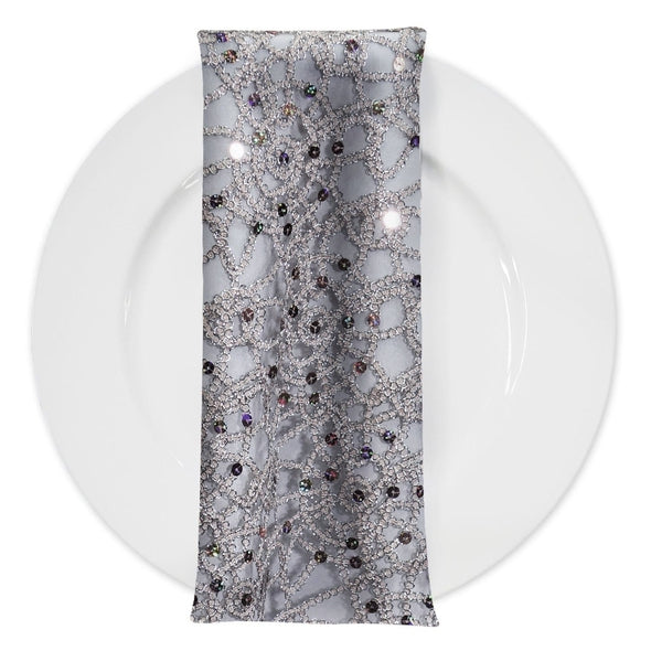 Flower Chain Lace (w/ Poly Lining) Table Napkin in Silver and White