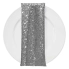Glitz Sequins (w/ Poly Lining) Table Napkin in Silver