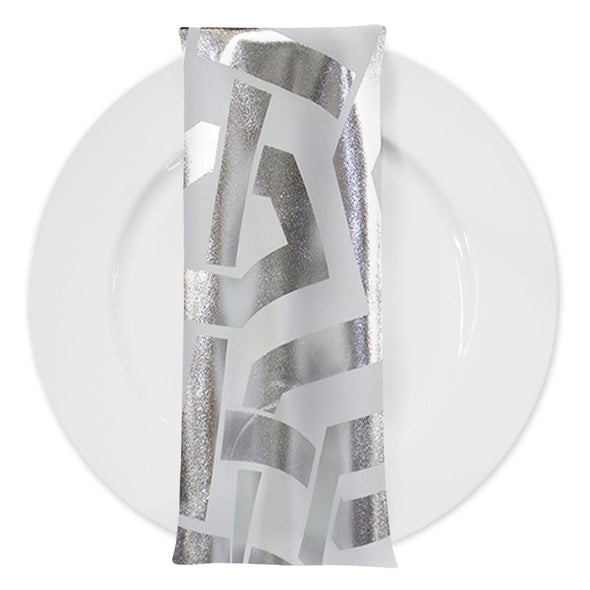 Majestic (Metallic Print) Table Napkin in White and Silver
