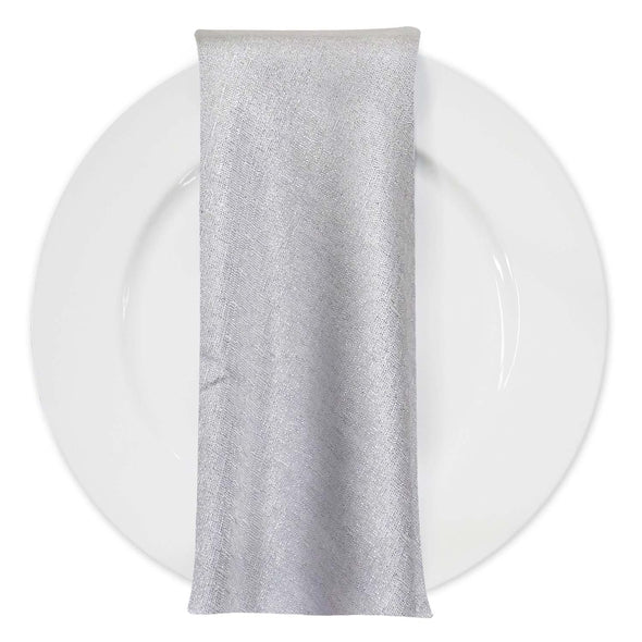 Metallic Burlap Table Napkins in Silver/Silver