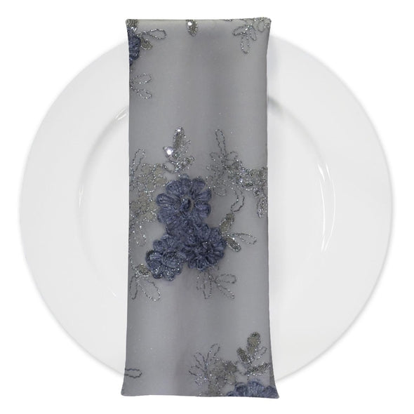 Ribbon Mesh Lace (w/ Poly Lining) Table Napkin in Silver