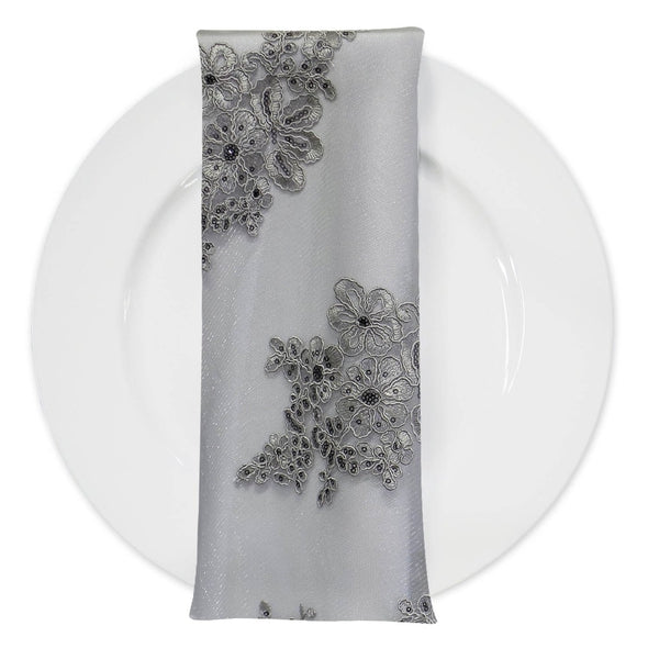 Venetian Lace (w/ Poly Lining) Table Napkin in Silver