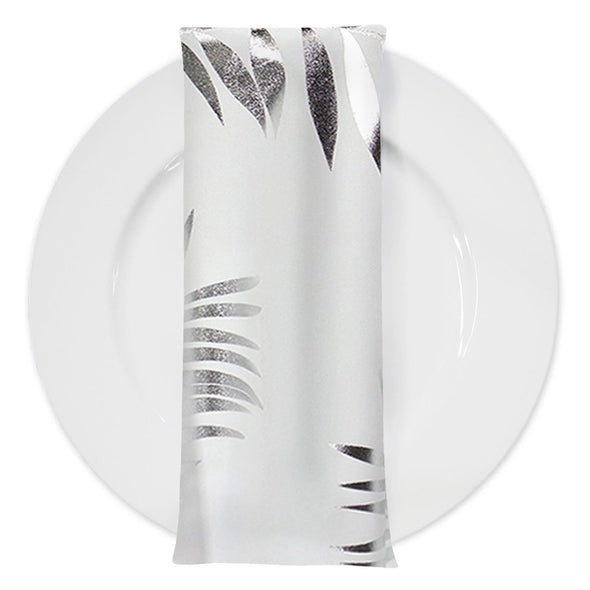 Leaf (Metallic Print) Table Napkin White and Silver