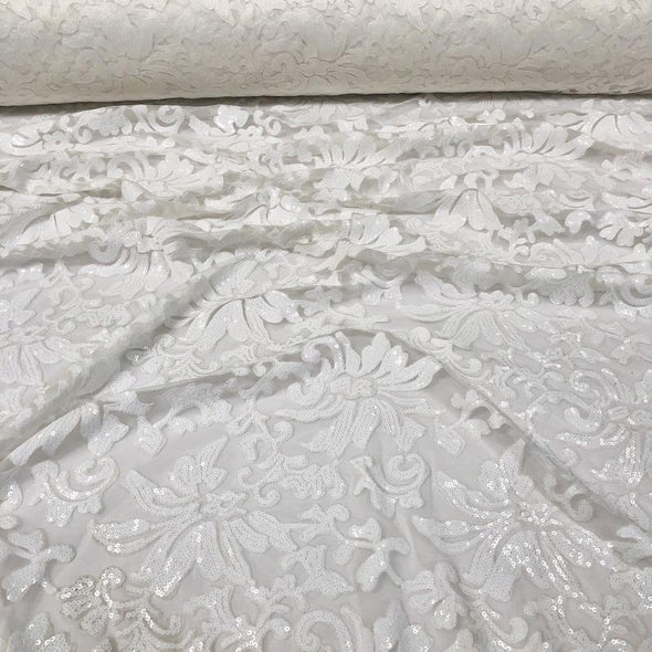 Fabric Collection: This material has a mesh/sheer base w/ sequins embroidery in our "Milan" design throughout the fabric.