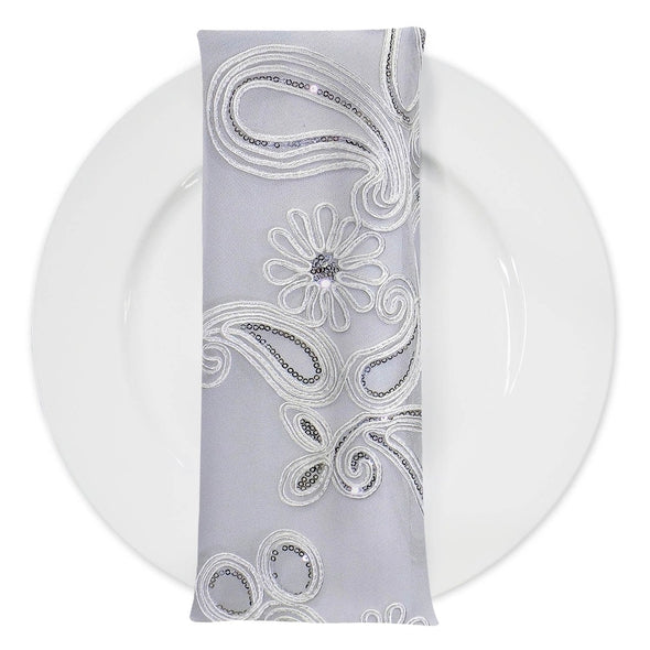 Paisley Floret Sequins (w/ Poly Lining) Table Napkin in White