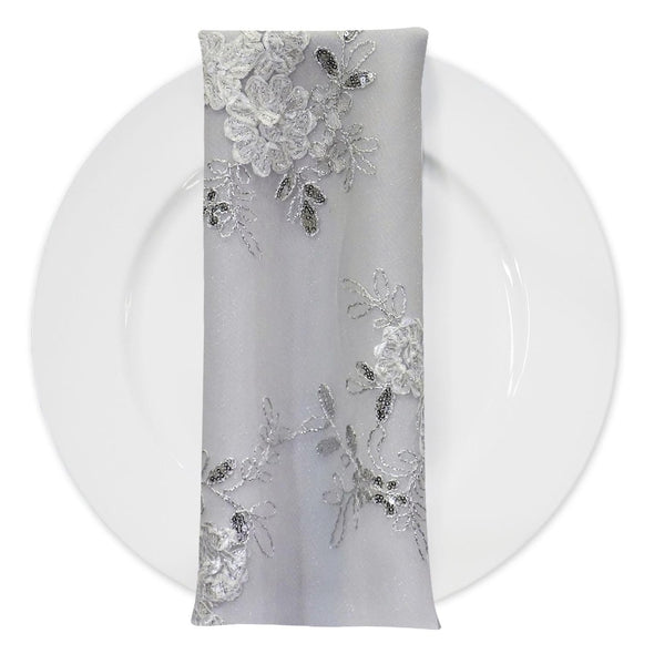 Ribbon Mesh Lace (w/ Poly Lining) Table Napkin in White