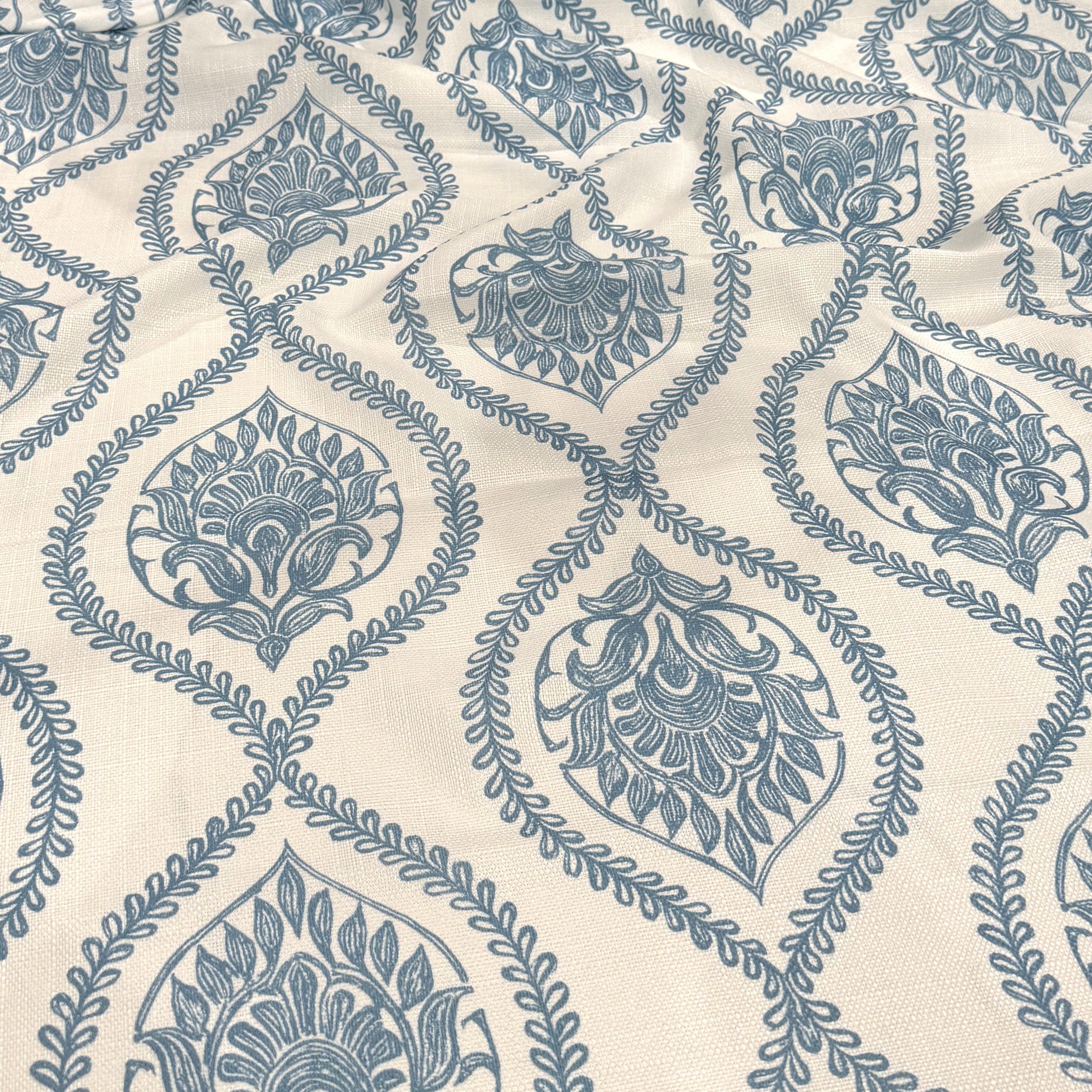 Fabric Collection: Mayfair (Slub Print) is a premium slubby, linen-inspired fabric featuring a refined ornamental pattern created through high-quality digital printing. The textured base provides a natural look and elegant drape, making it a sophisticated choice for elevated event décor.