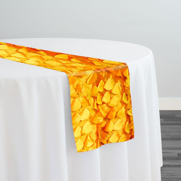 Our Orange Table Runners are crafted from a variety of luxurious fabrics, allowing you to choose the perfect texture for your event. Options include satin, known for its glossy finish that adds a sophisticated touch, and taffeta, which offers a crisp texture and a beautiful drape. Jacquard provides intricate patterns for a more formal appearance, while sheer fabrics lend an ethereal quality to your décor. Additionally, our digital prints offer endless design possibilities, making it easy to coordinate with any theme or color palette for your special occasions.