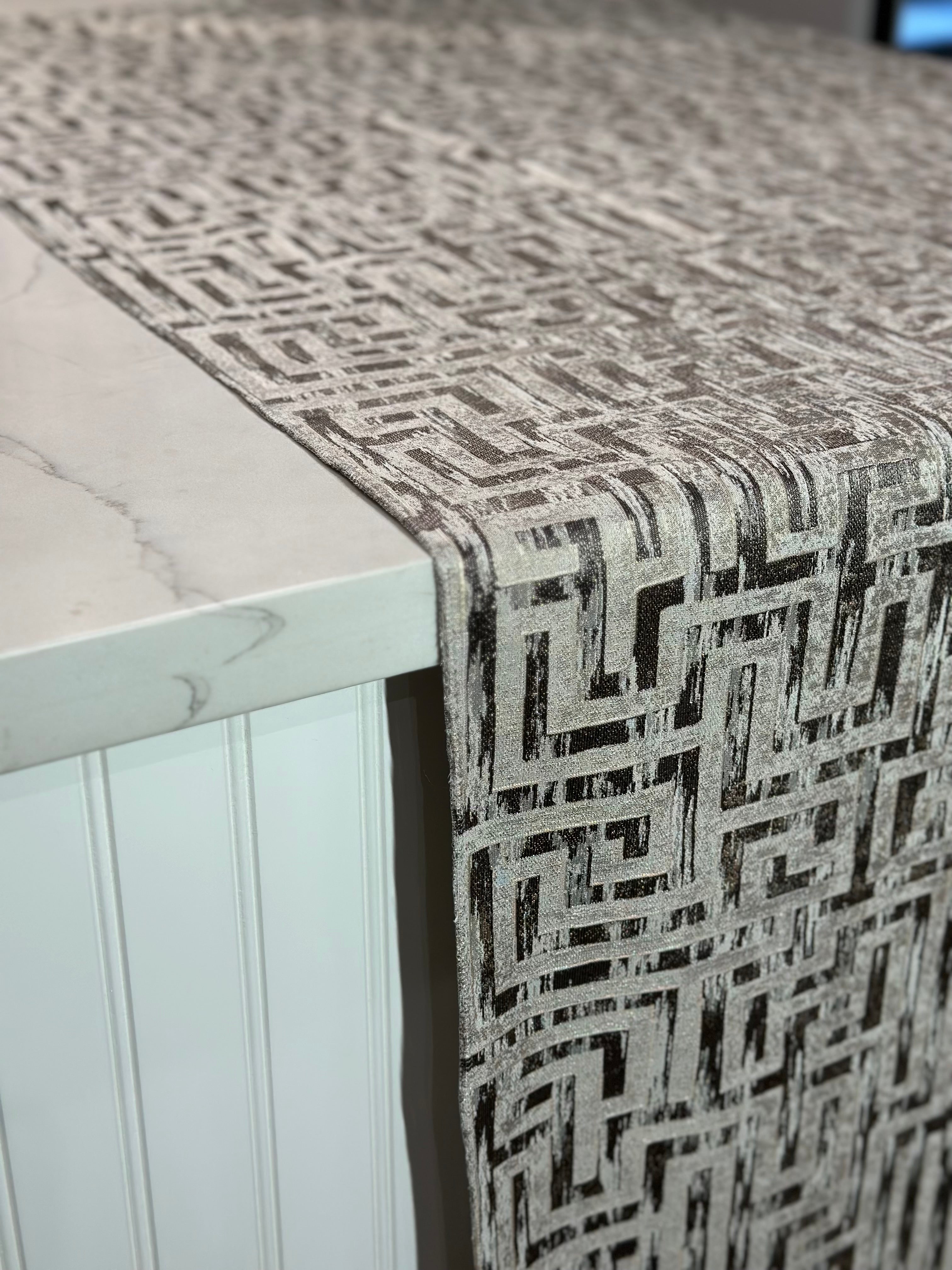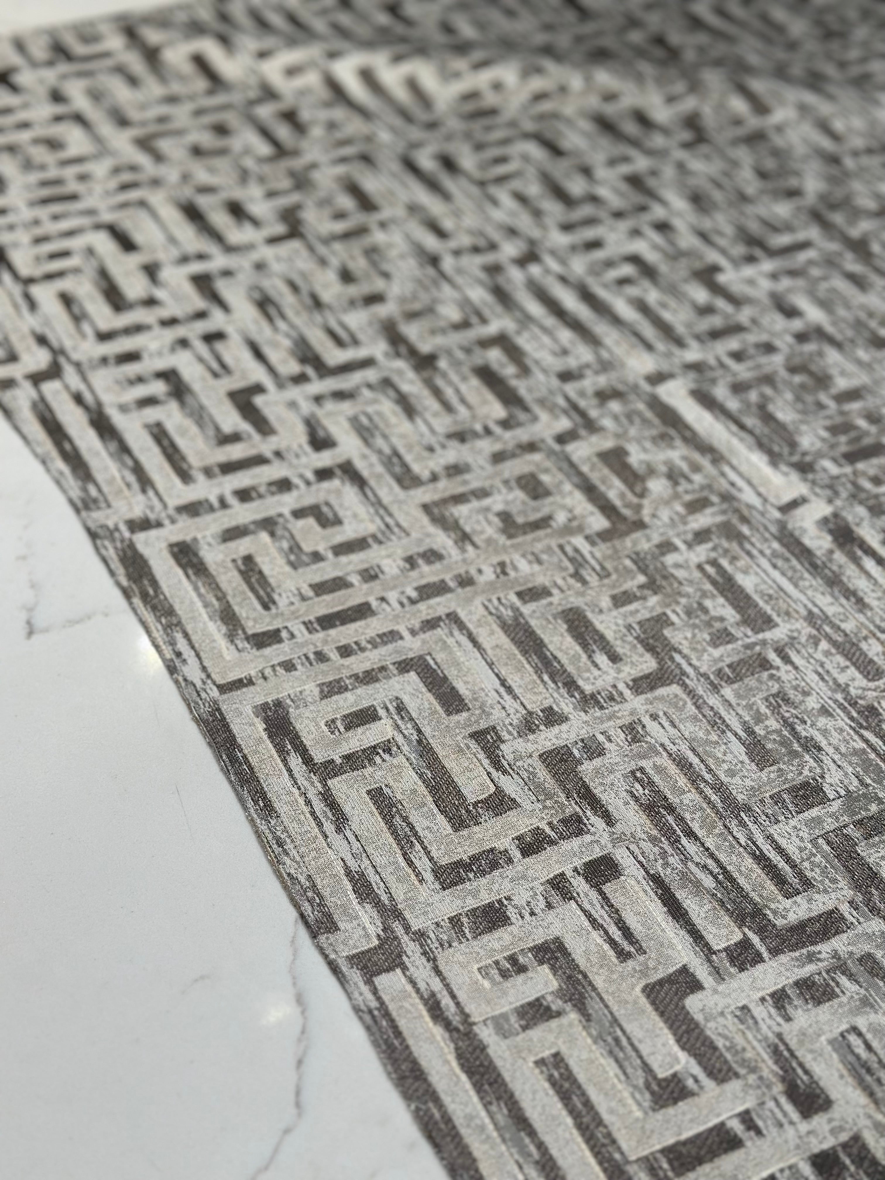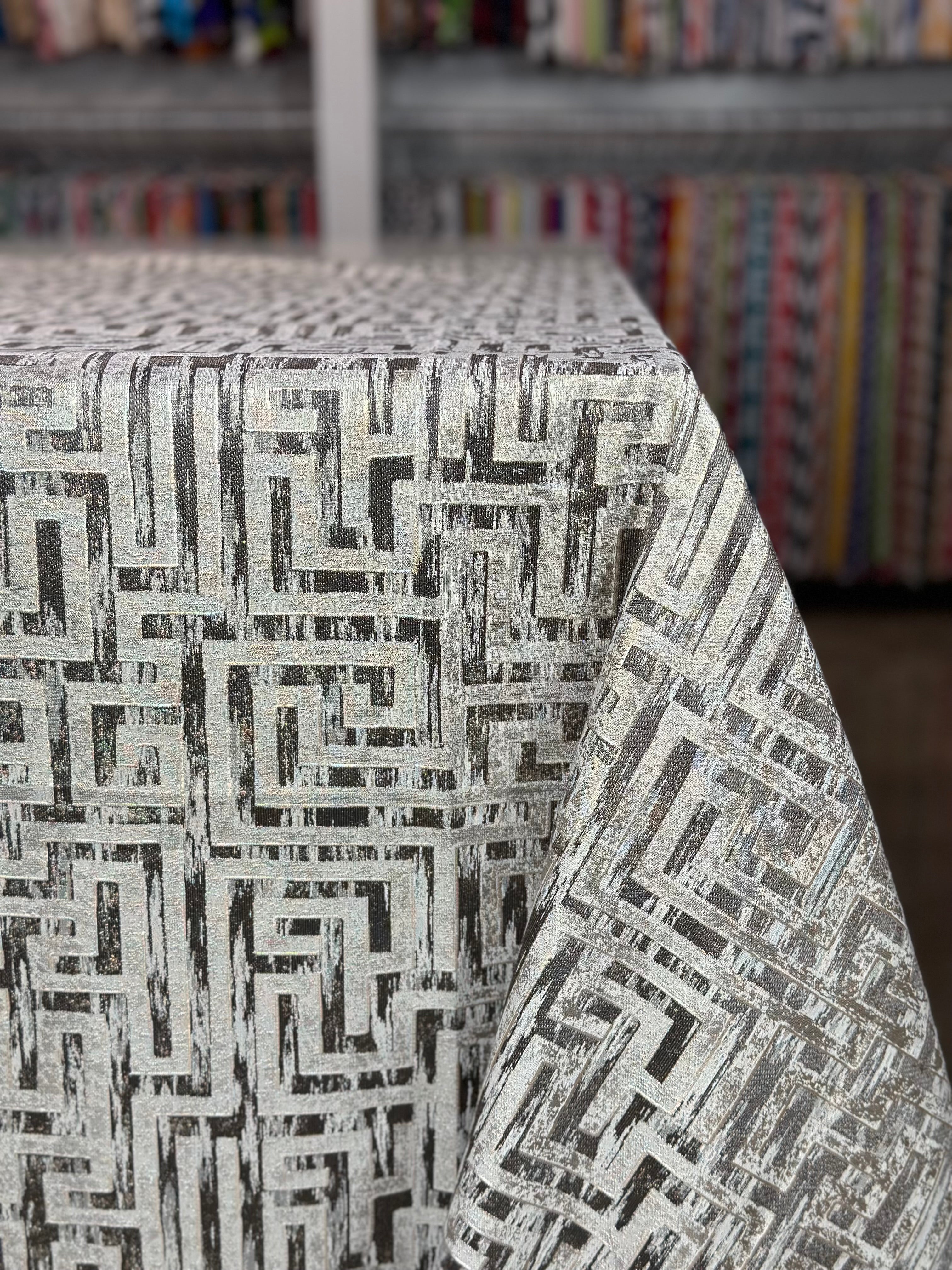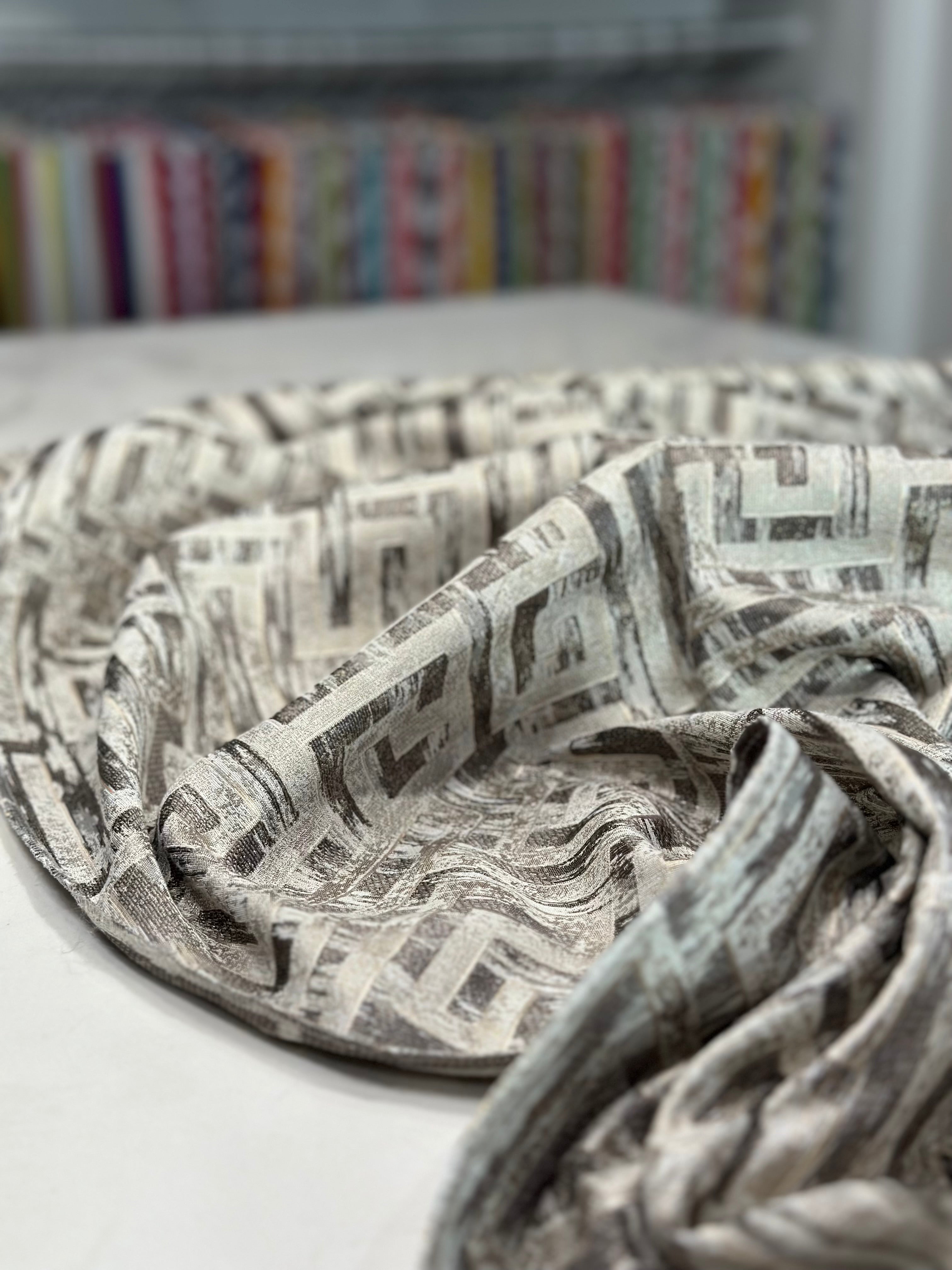 Fabric Collection: This fabric is a Jacquard material with a metallic geometric embroidered design throughout.