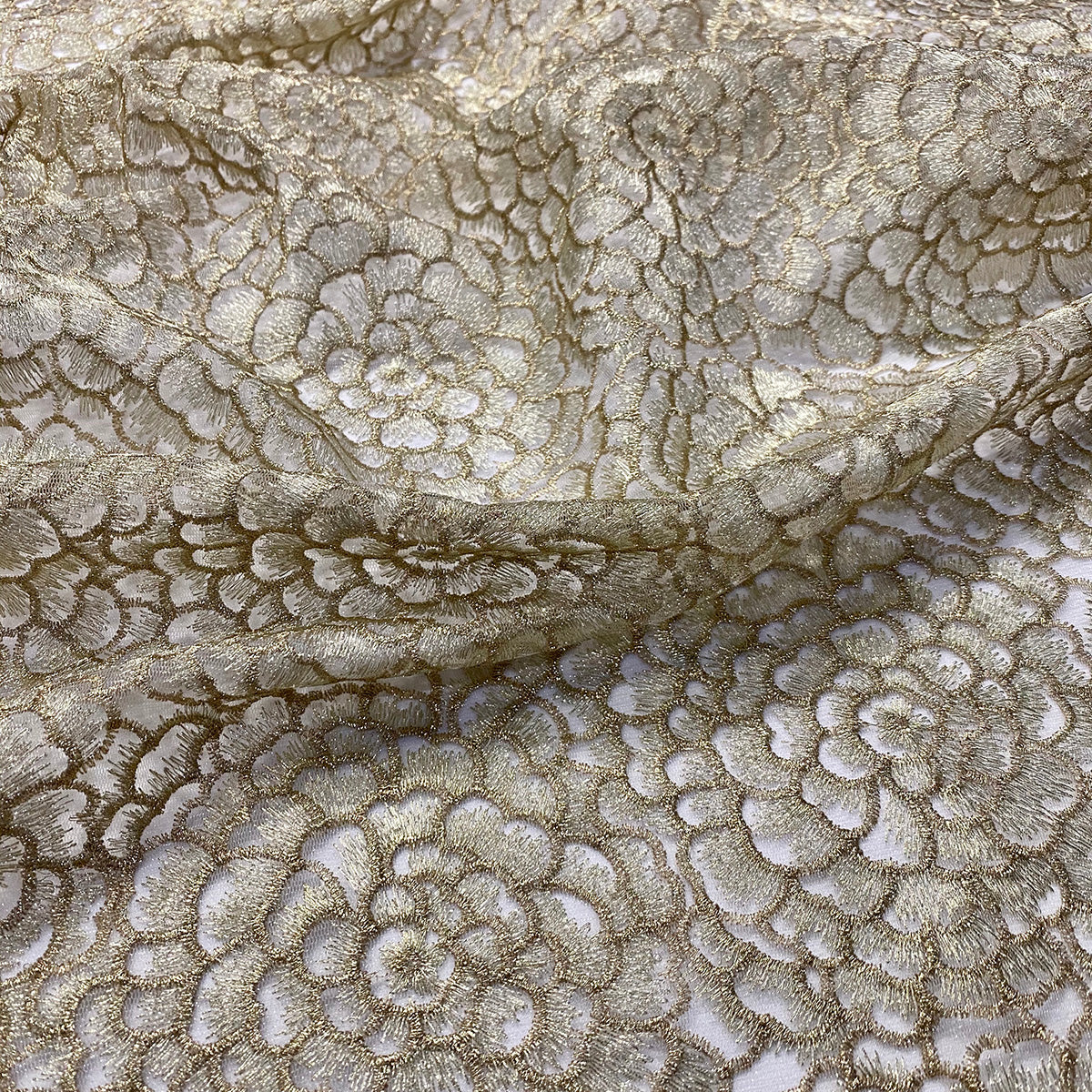 Fabric Collection: This fabric has a mesh/sheer base w/ a floral & metallic design embroidered throughout.