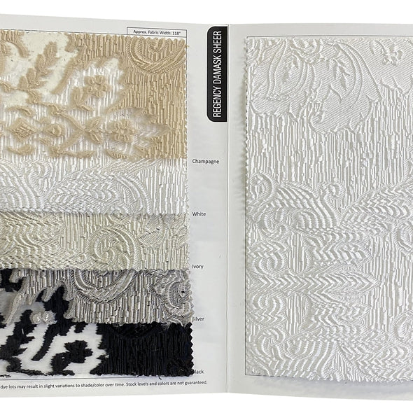 Fabric Collection: This material is a sheer Jacquard embroidery in a sheer Damask pattern throughout.