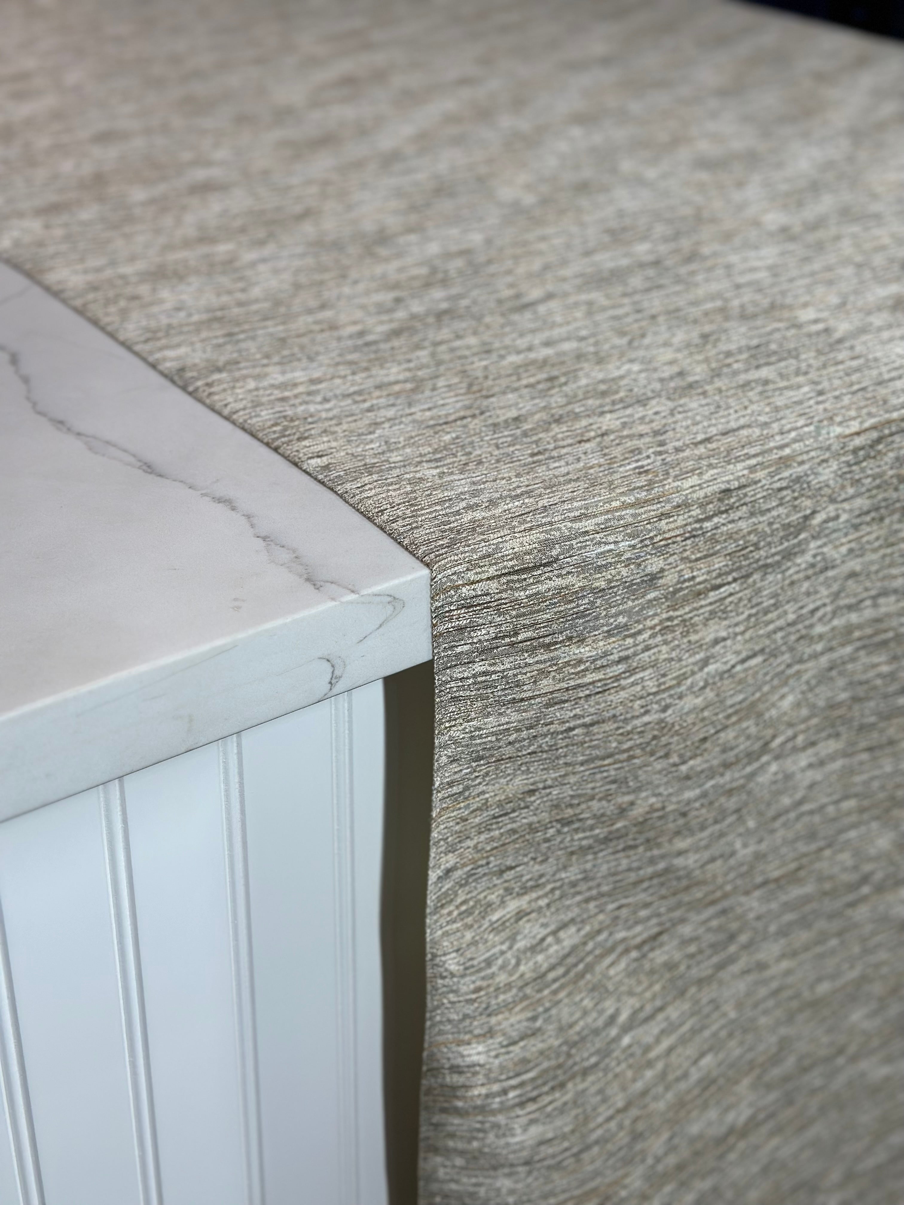 Table linen sizes that exceed the width of the fabric will have seams. All seams are sewn with 5 thread overlock sergers for long lasting durability.