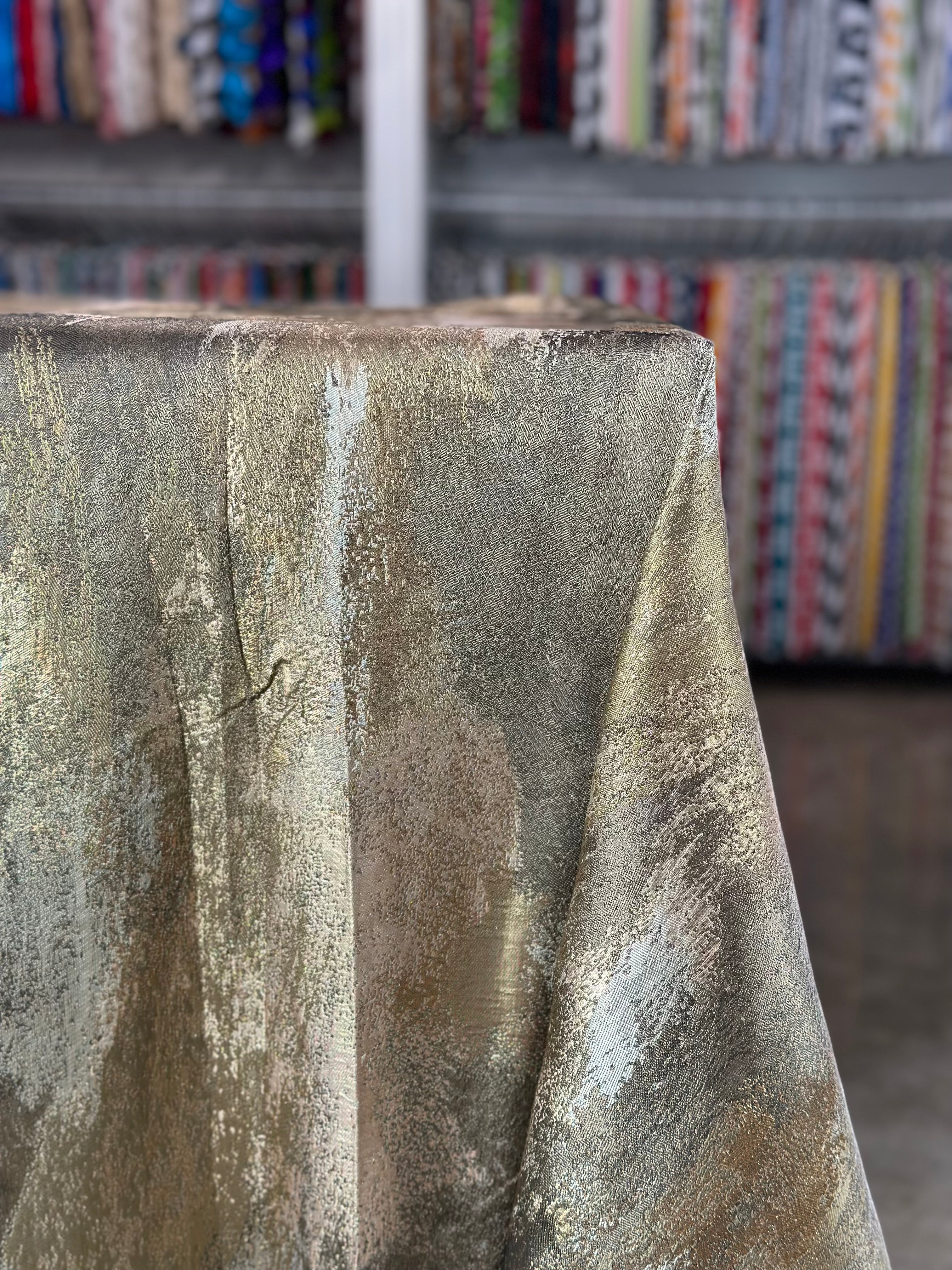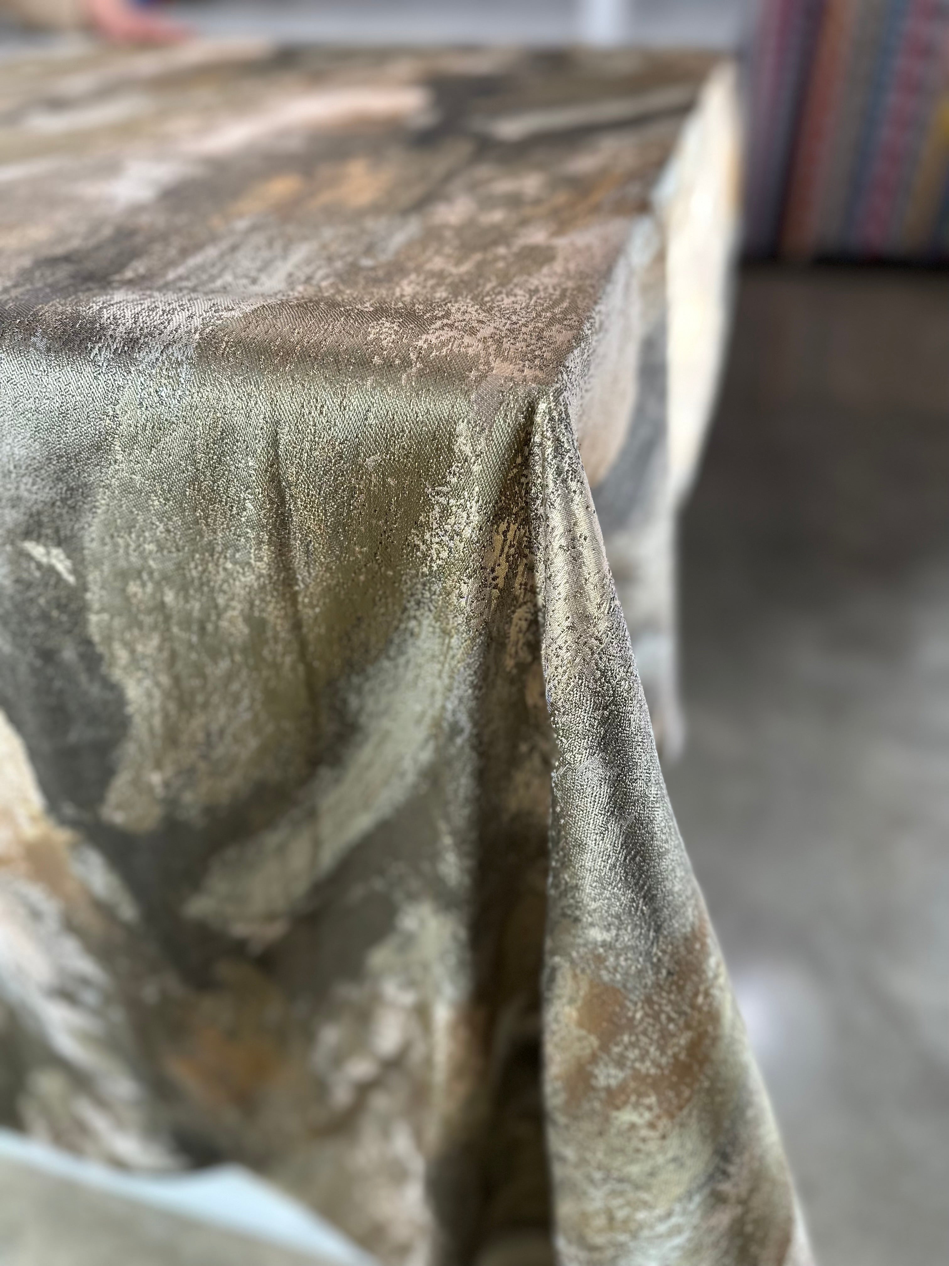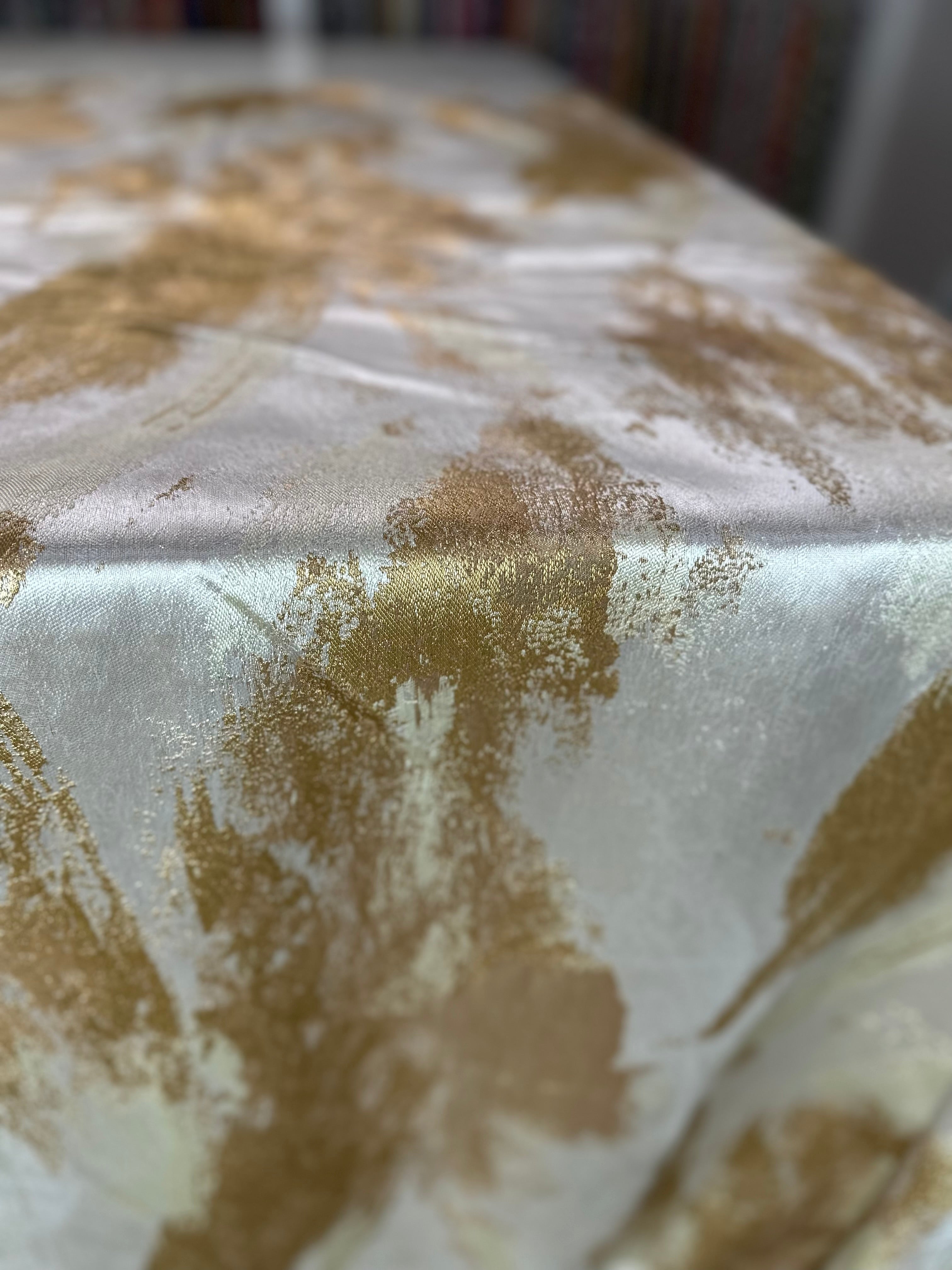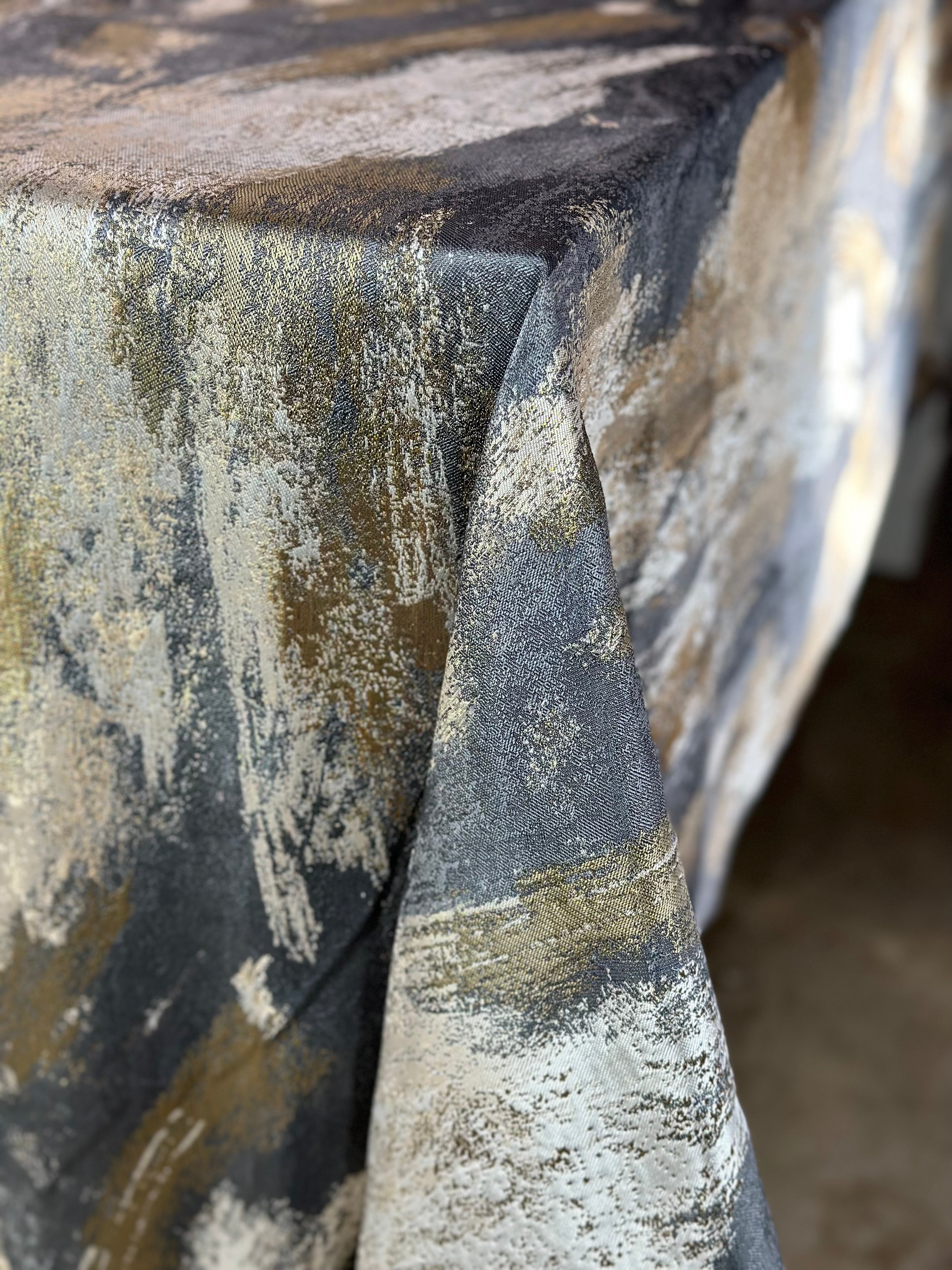 Our gold tablecloths are available in a wide range of materials, patterns, and textures. Therefore, you're bound to find something you love that will suit your specific occasion. Some of our most well-loved fabrics are velvet, sequins, satin, lace, polyester and jacquard.