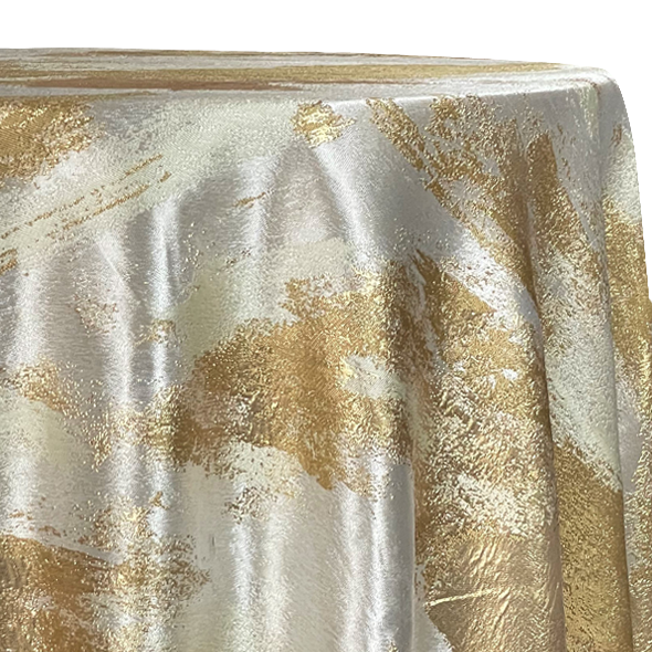 One of the best qualities of gold is that it can work with any color! From green to red, blue, white, and more, you can break up your gold theme with any color of your choosing. Furthermore, we offer various gold tablecloths that incorporate other colors. The black and gold fabric is certainly a fan-favorite and can certainly help you create a stunning and exquisite atmosphere at your event.