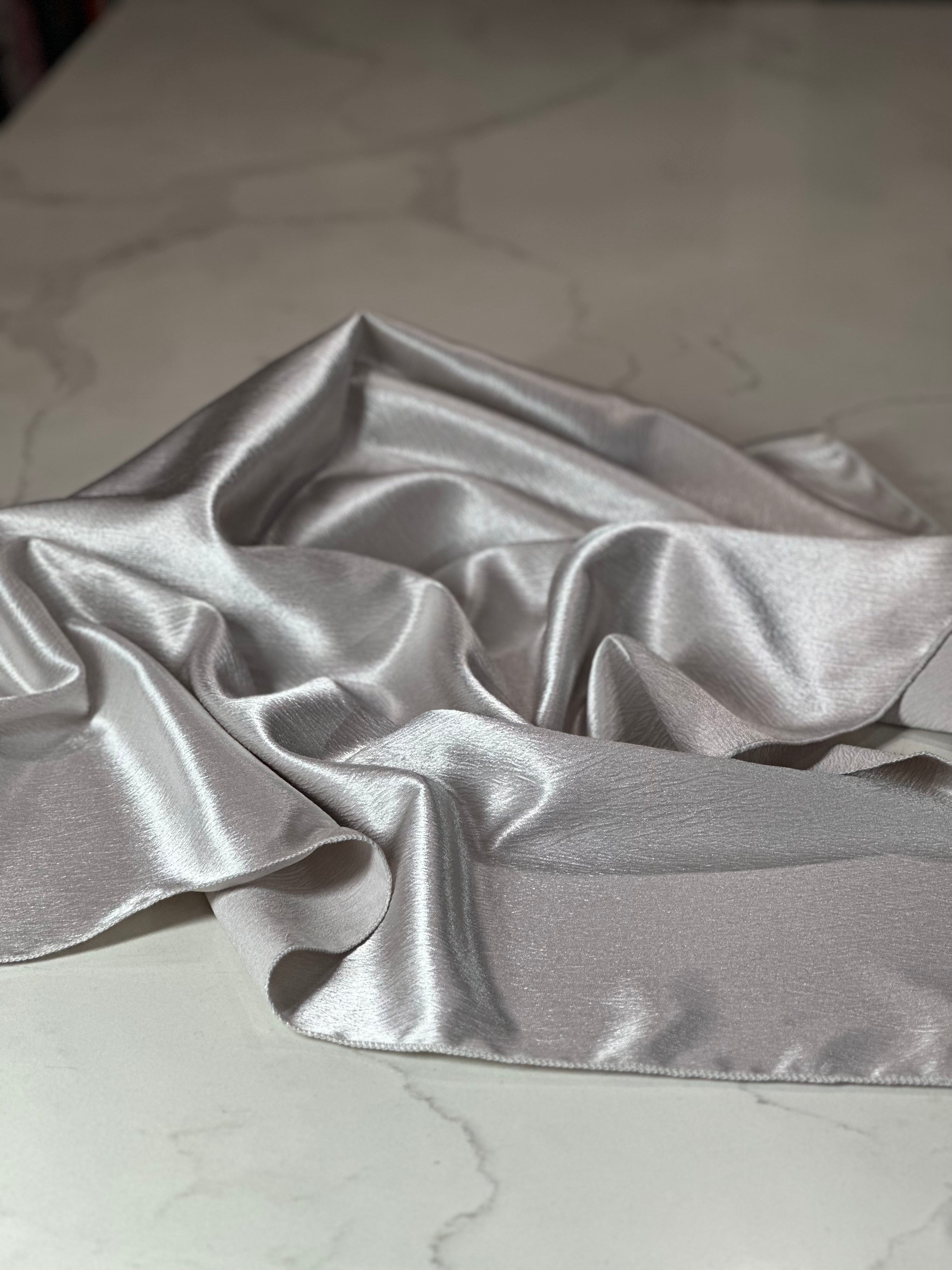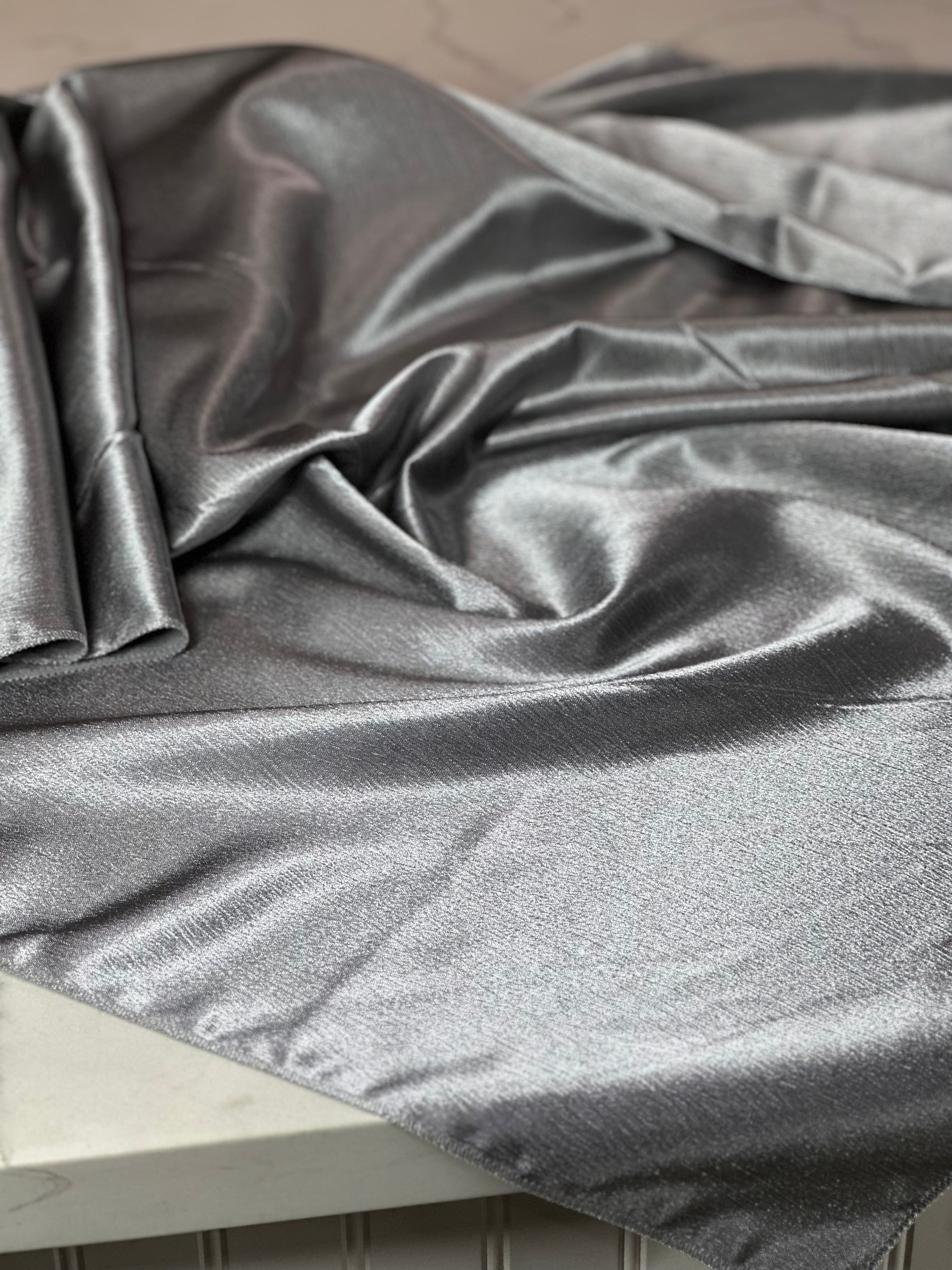 Fabric Collection: This fabric is a Polyester base with a textured shiny(satin finish) design throughout. Design is permanent and will not press or iron out.