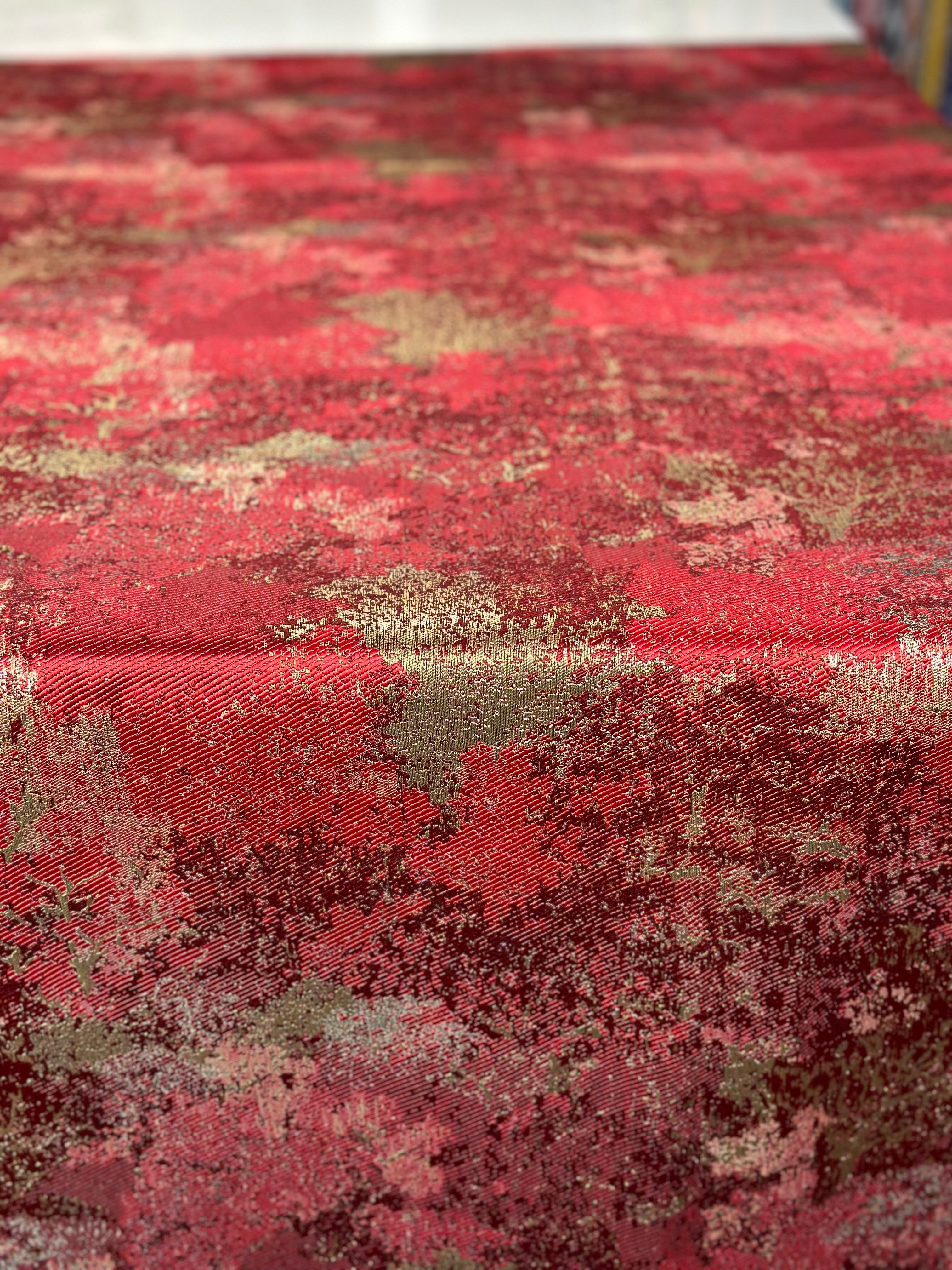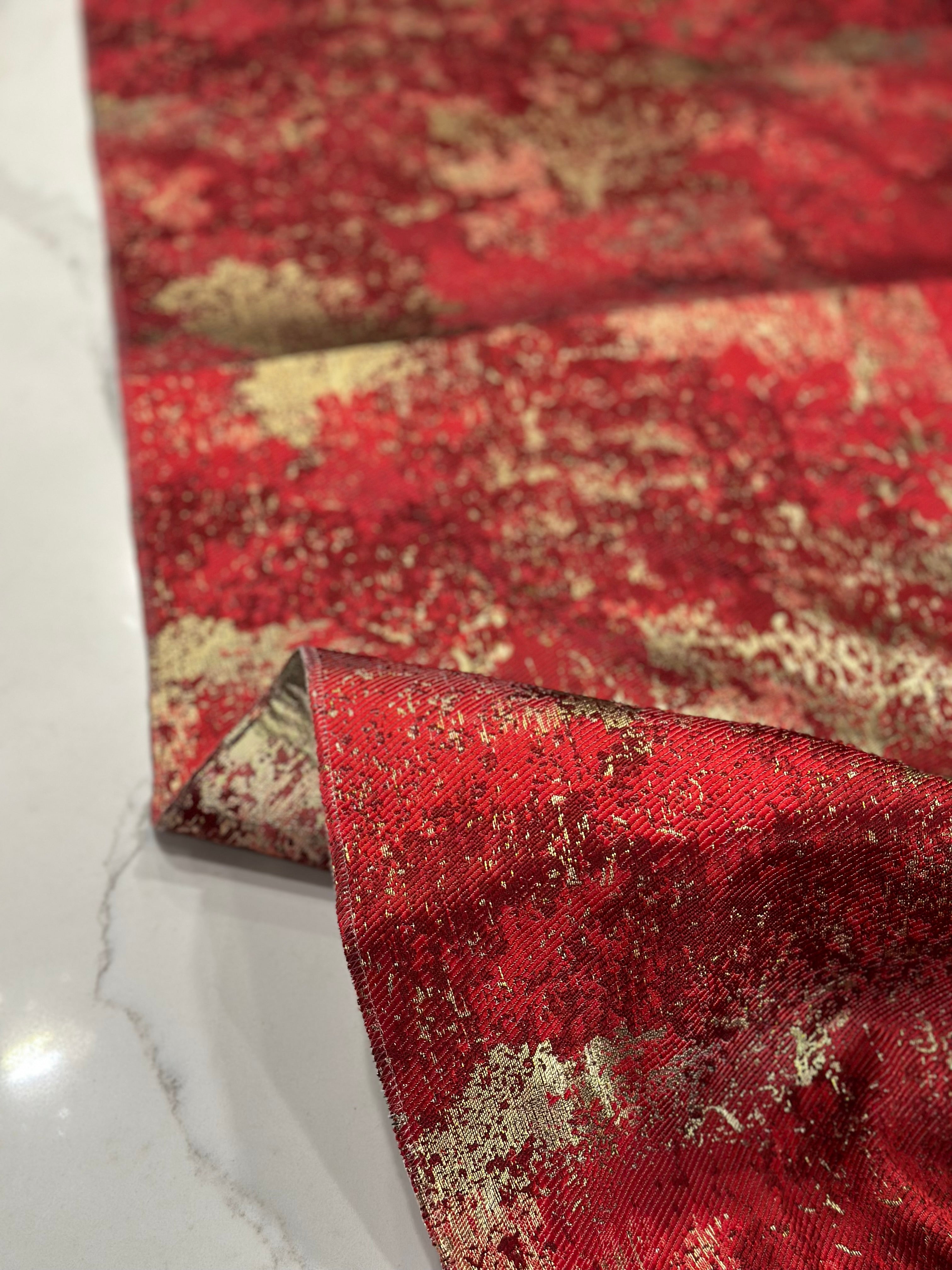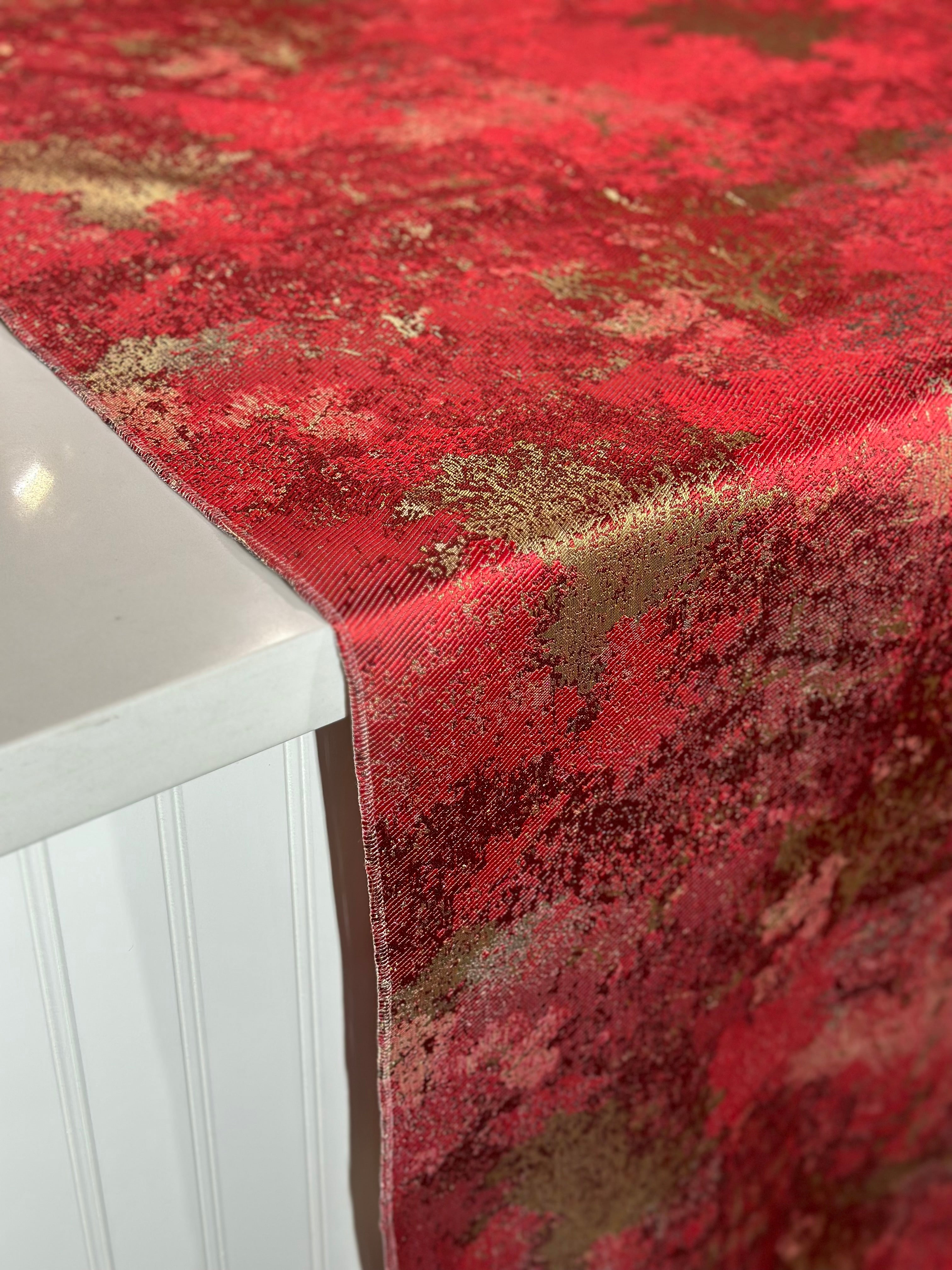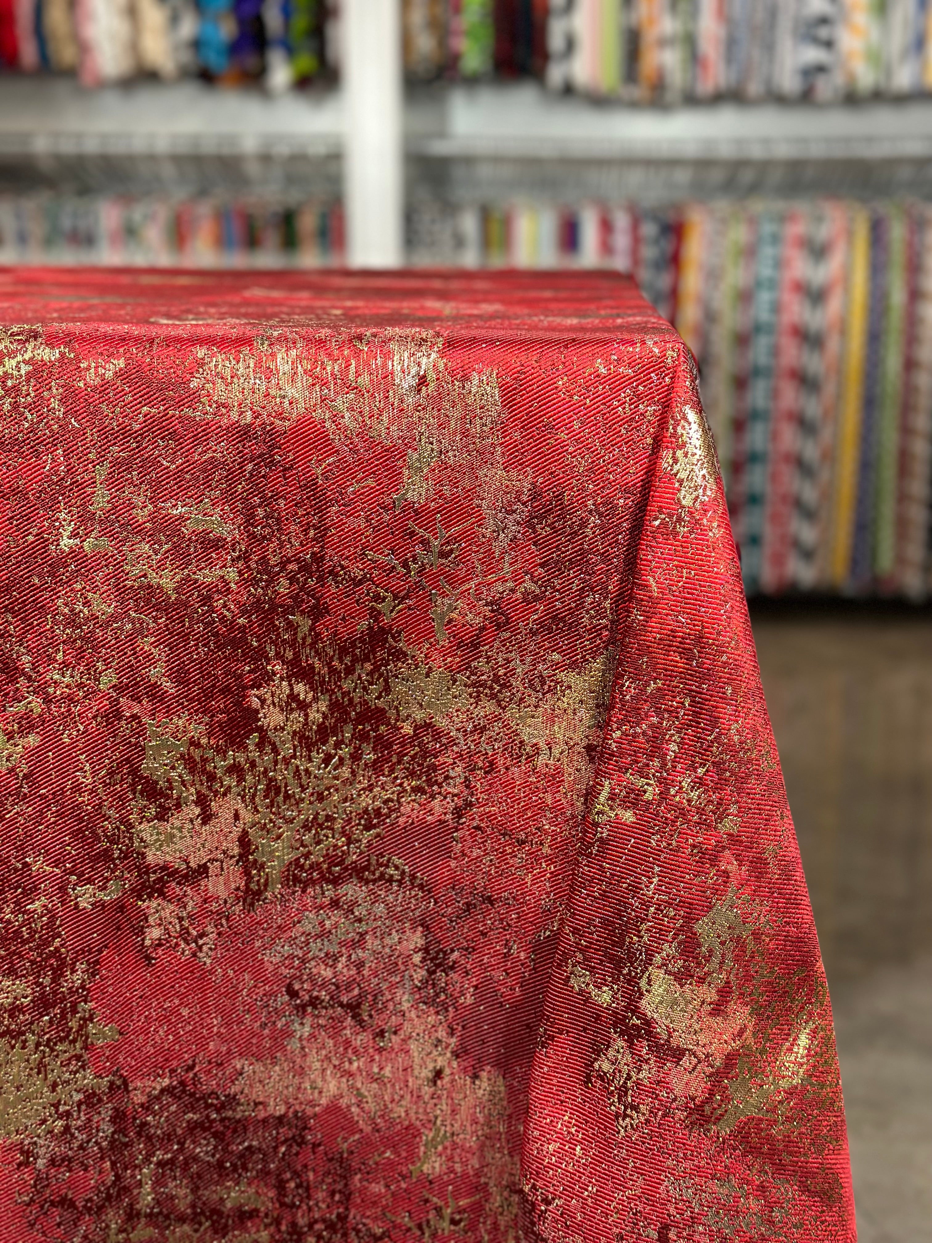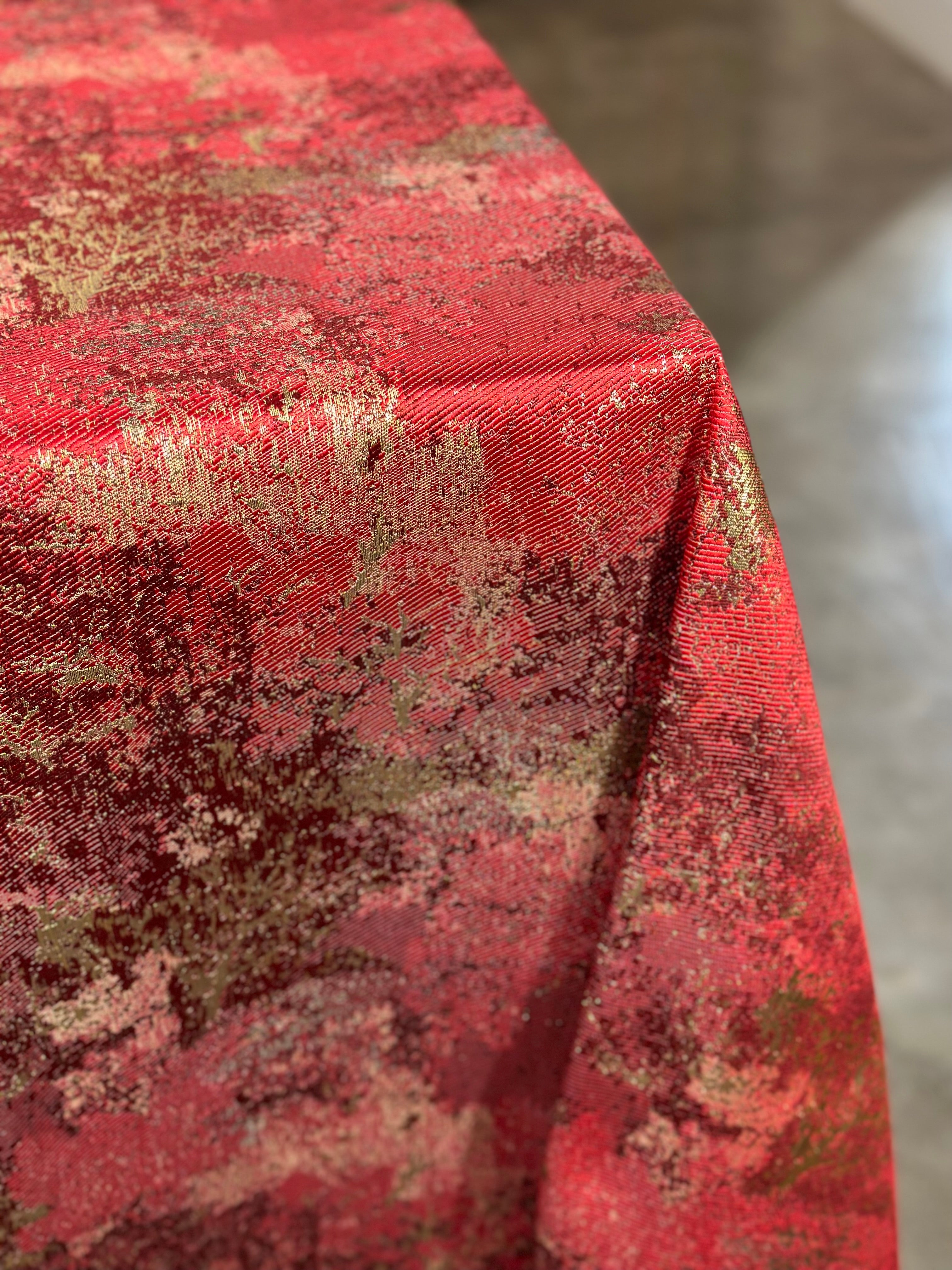 Cascade Jacquard Table Linen in Red and Gold