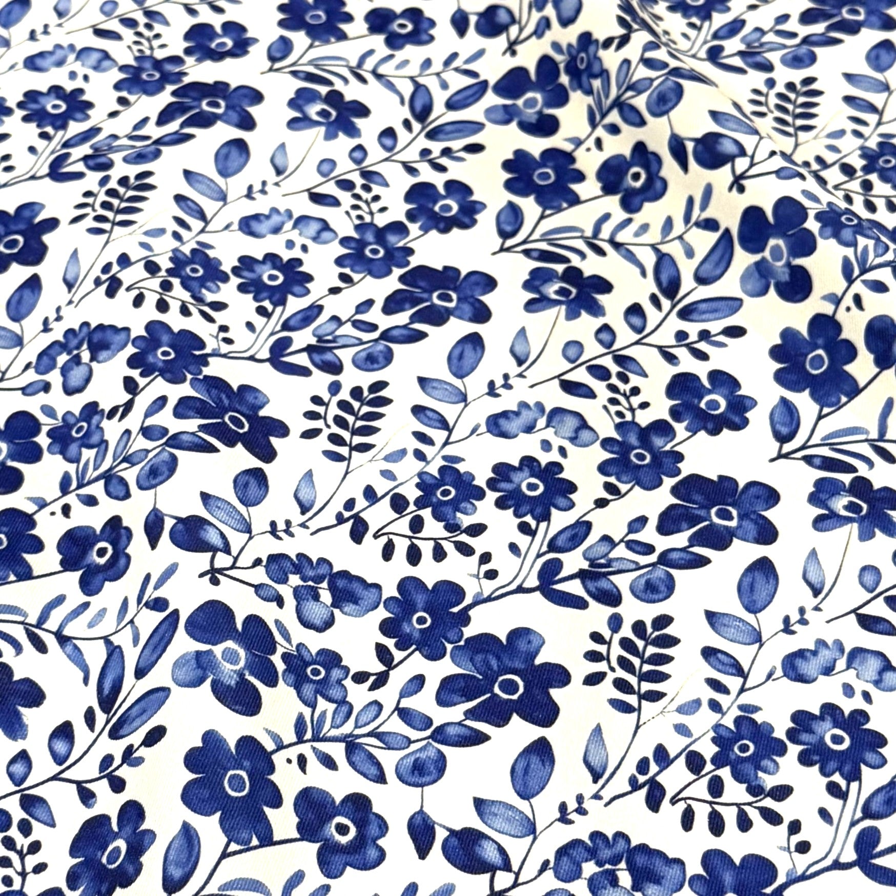 Elevate your event décor with our Scarlet (Poly Print) fabric, featuring a stunning blue floral design on a white background. Perfect for weddings, parties, and upscale events, it's available as tablecloths, runners, napkins, and drapes. Durable and versatile, it's ideal for rental companies and event professionals seeking timeless elegance.