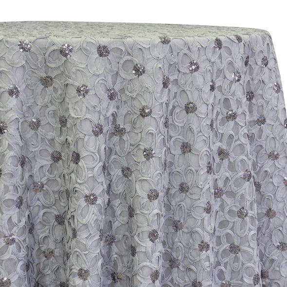 Fabric Collection: This fabric has a mesh/sheer base w/ a flower petal embroidery design w/ sequins.