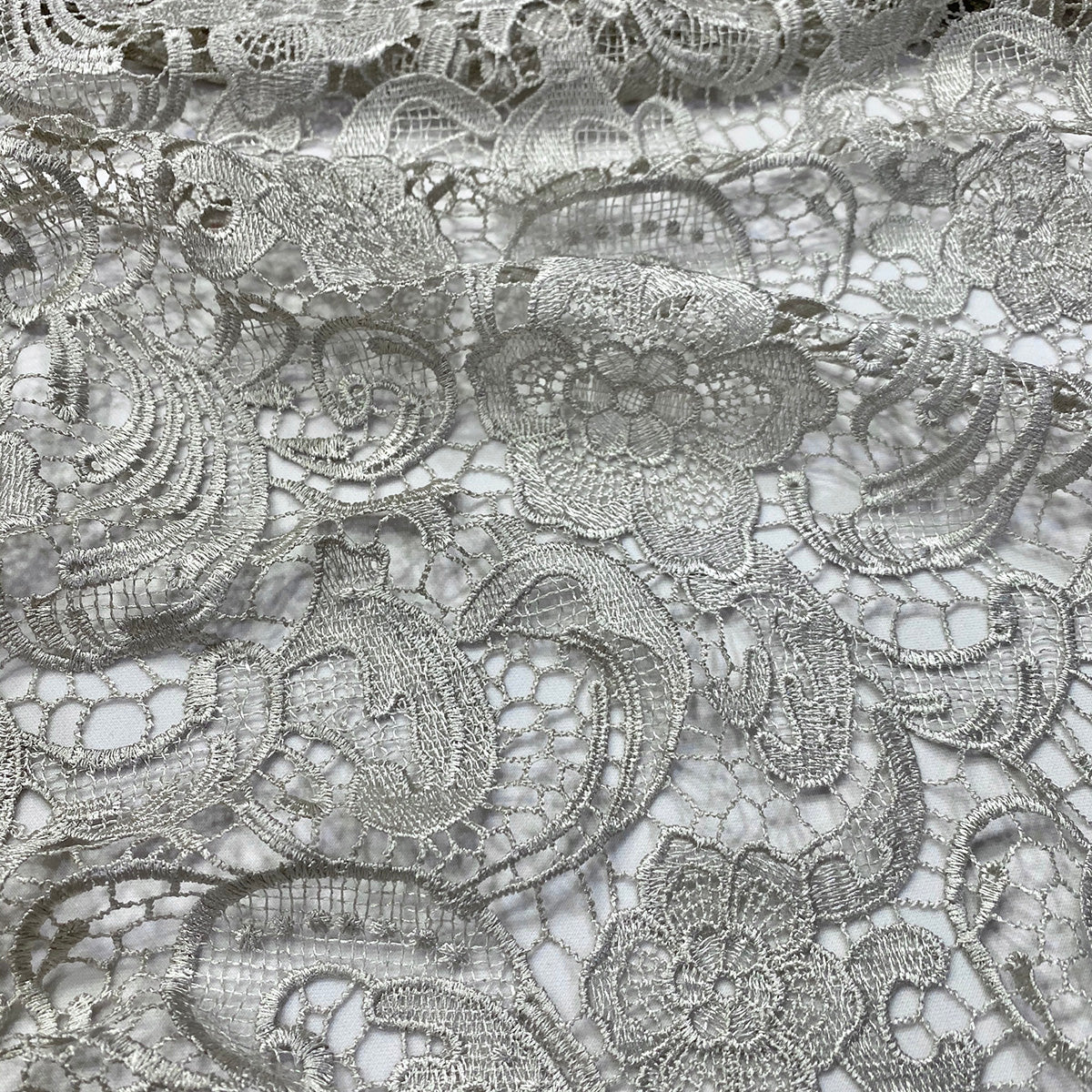 Fabric Collection: This material is a crochet lace embroidery look throughout the fabric.