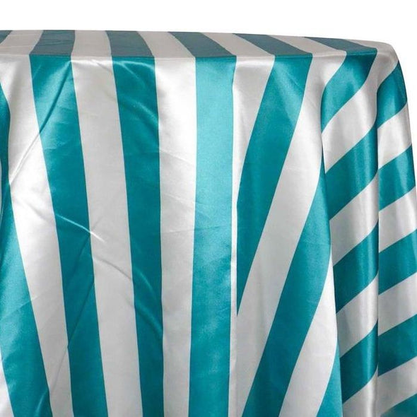2" Satin Stripe Table Linen in White and Jade