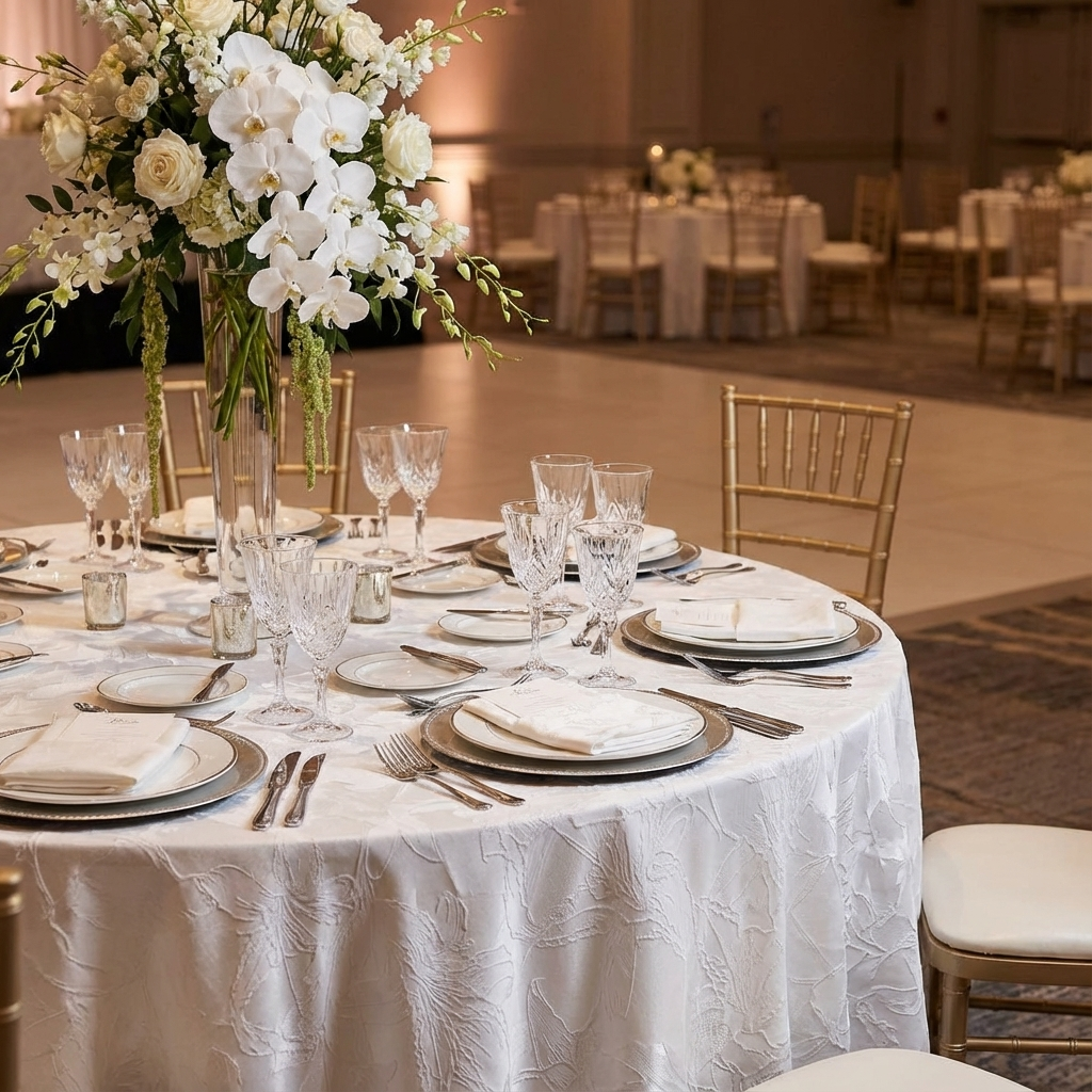 • All table linen (tablecloths, overlays, napkins runners, skirting etc),