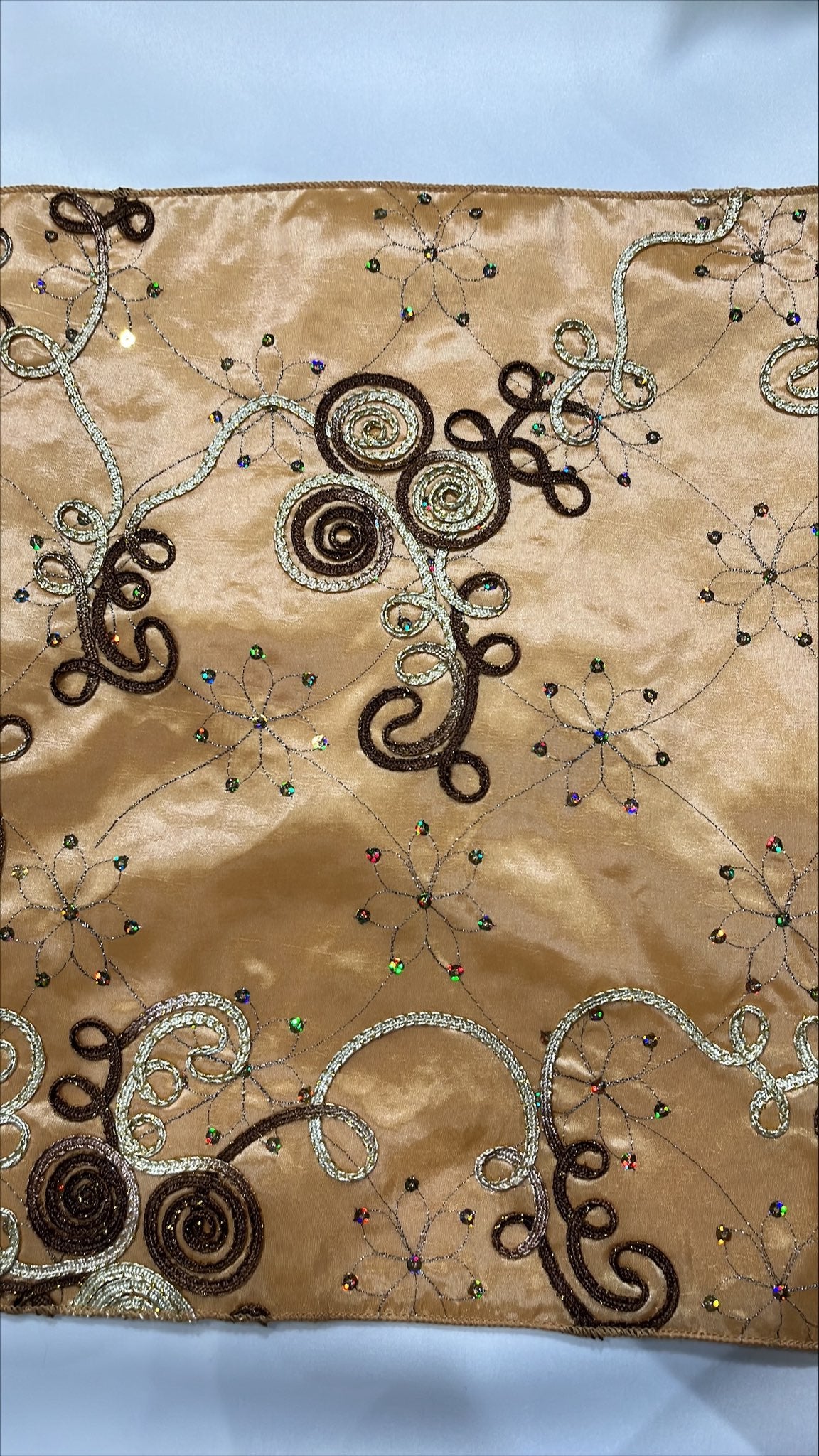 6pcs - Ribbon Taffeta Sequins Table Runner 14"x108" - Champagne/Brown