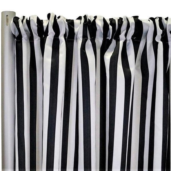SIZE OPTIONS: Select your desired panel height above. Panels are approx. 58" wide and come standard with a 4" Rod Pocket on top. You can add a bottom Rod Pocket for an additional $5.00 per panel. Our drapes will work on any of our Pipe & Drape systems. Contact us at 800-590-9508 for custom sizing.