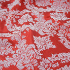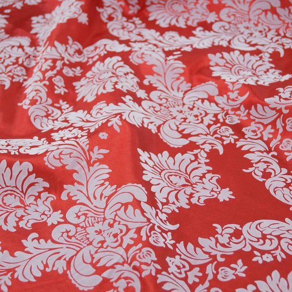 Damask Flocking Taffeta Wholesale Fabric in Silver on Red