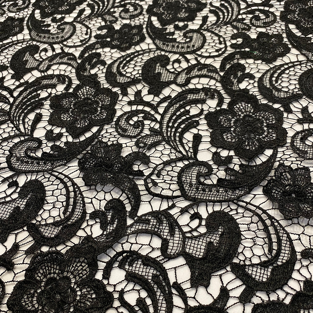Fabric Collection: This material is a crochet lace embroidery look throughout the fabric.