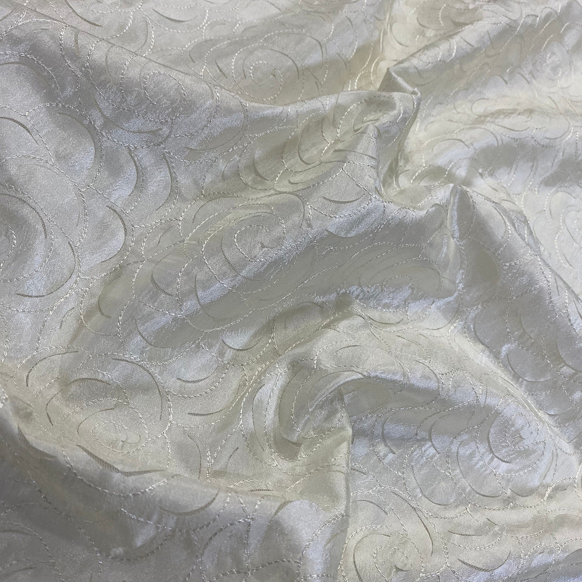 Fabric Collection: This fabric has a mesh base with a satin top that has a floral embroidered design. The floral petals have open flaps which offers a beautiful and unique look.