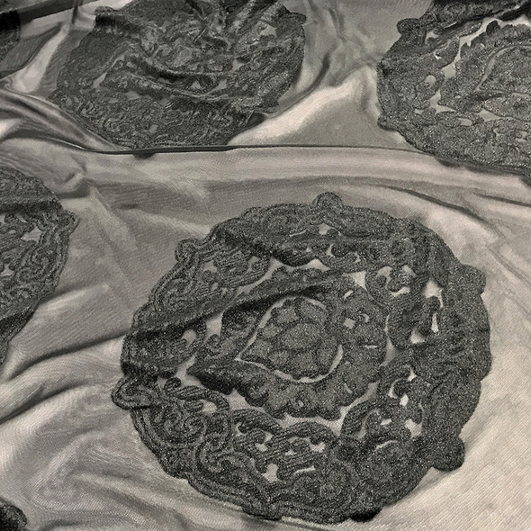 Medallion Jacquard Sheer Wholesale Fabric in Black