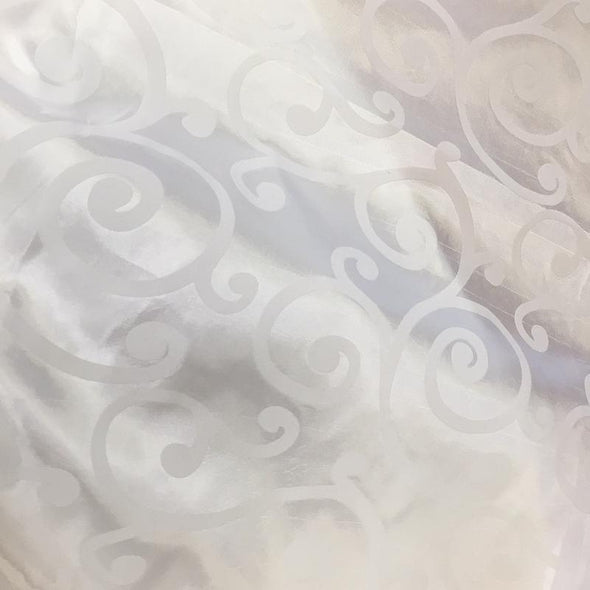 Swirl Flocking Taffeta Wholesale Fabric in White on White