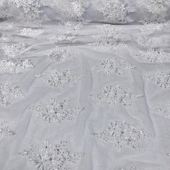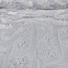 Fabric Collection: This fabric has a sheer base with a sequined floral design embroidered throughout.