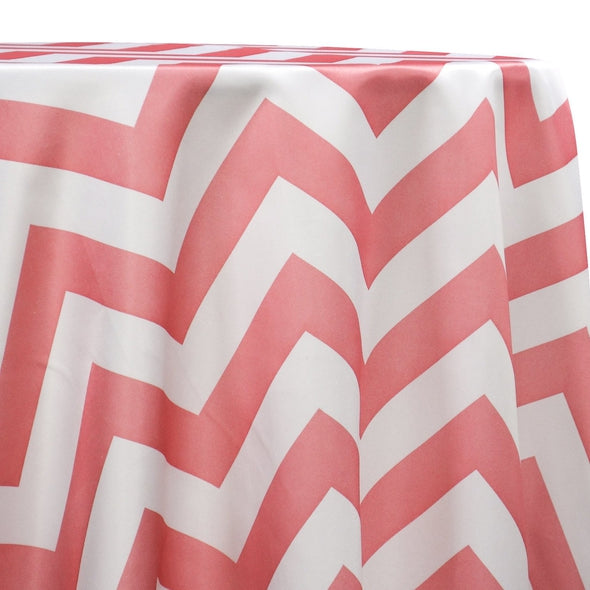 10pcs - Chevron Print (Lamour) Table Linen 132" Round - Coral and White